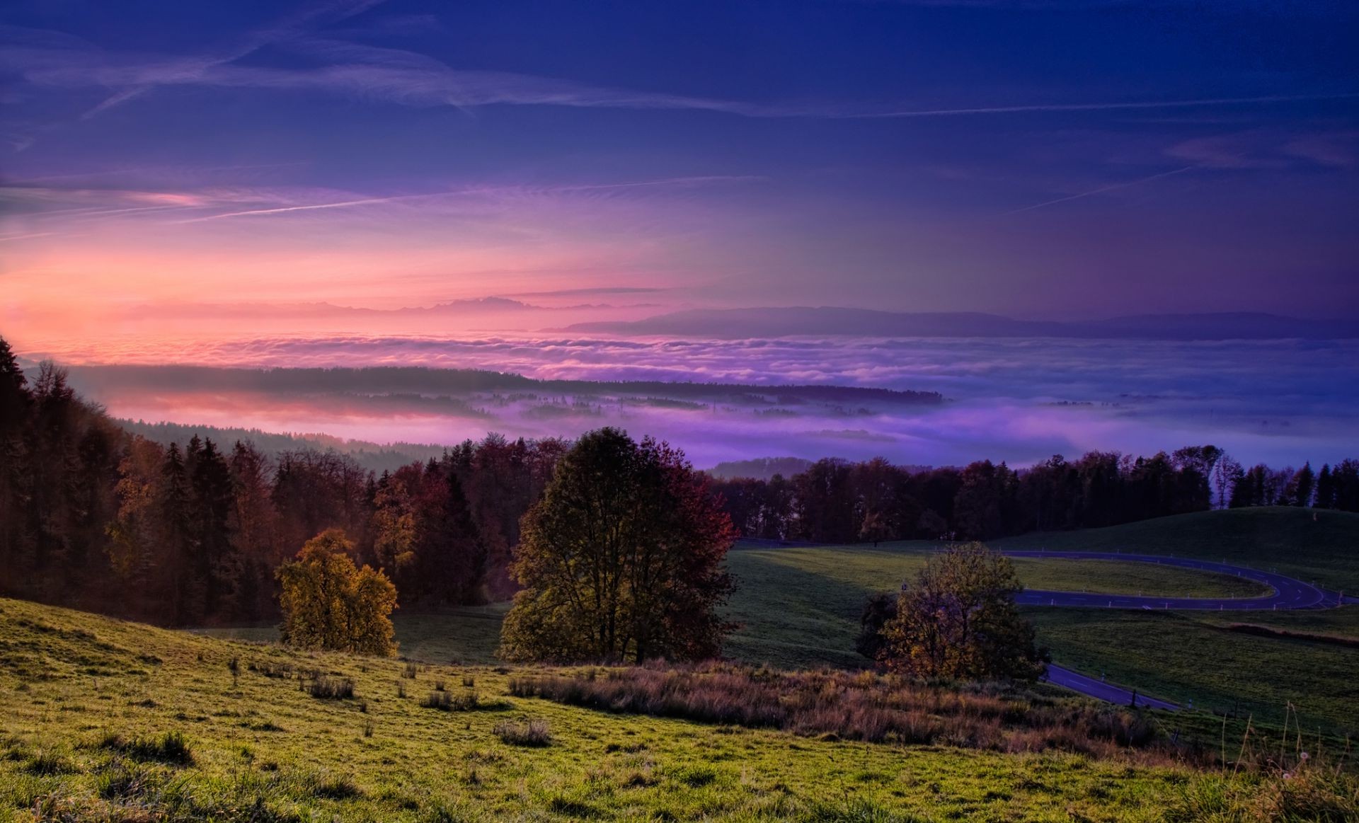 Coucher de soleil derrière la montagne au-dessus de la forêtCoucher de soleil derrière la montagne au-dessus de la forêt