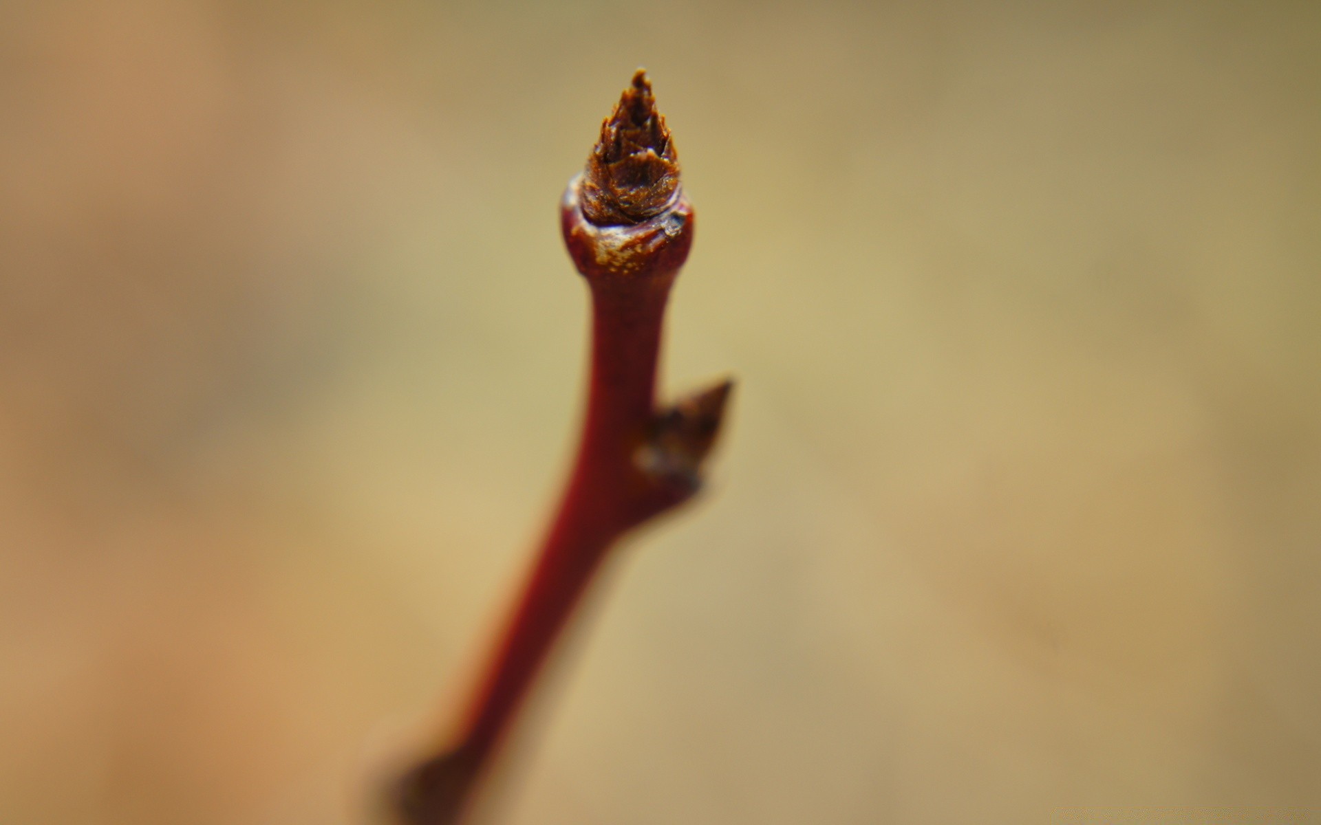 Macro de feuilles sur une branche sur un fond flouMacro de feuilles sur une branche sur un fond flou
