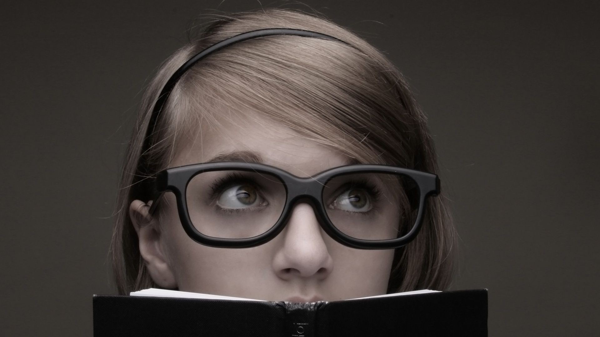 Photo d'une jeune fille à lunettes tenant un livre dans ses mains