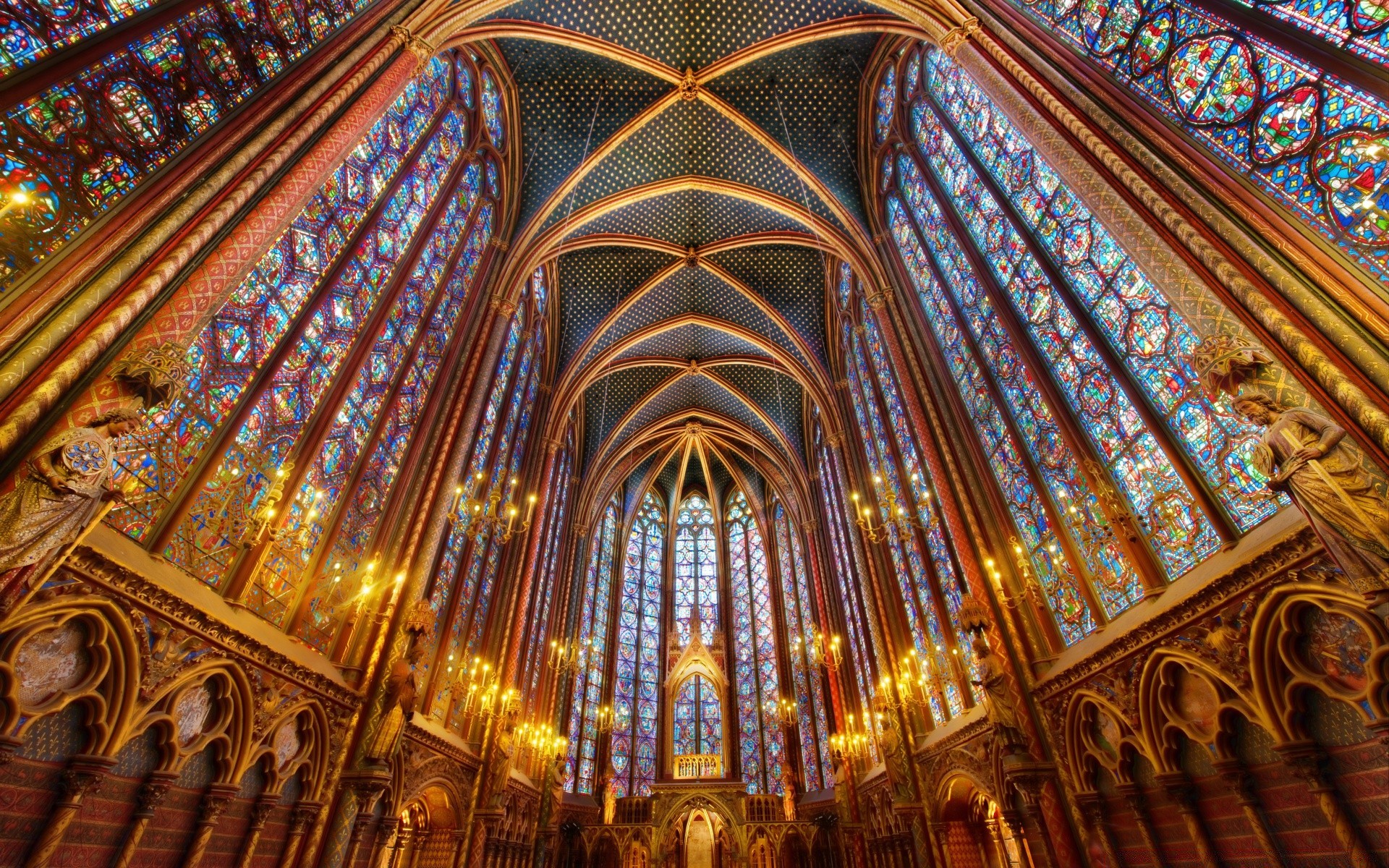 Les hautes voûtes de la cathédrale sont décorées avec des motifs de verre coloré