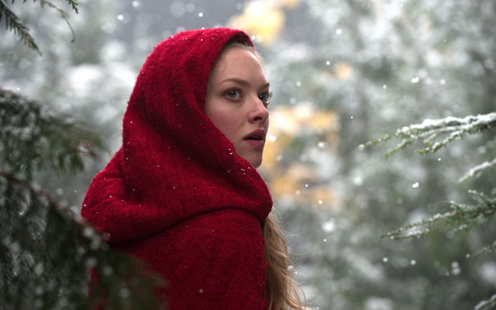 Fille dans un manteau rouge chaud en hiver dans la forêt