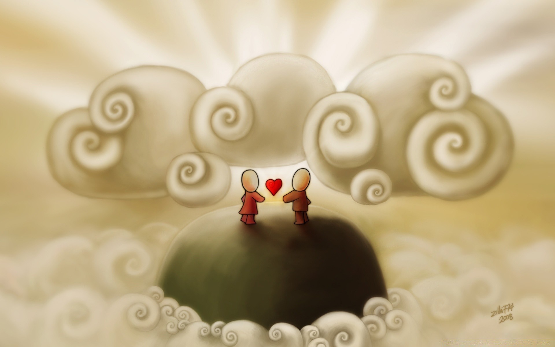 Amoureux sous les nuages sur le bureau