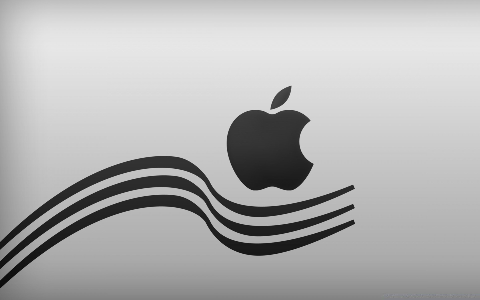 Logo Apple avec bord lumineux sur fond de ciel bleu foncé et motifs