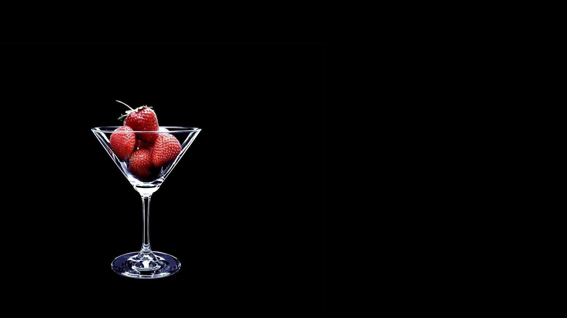 Fraises dans un verre à Martini. Fond noir. Minimalisme