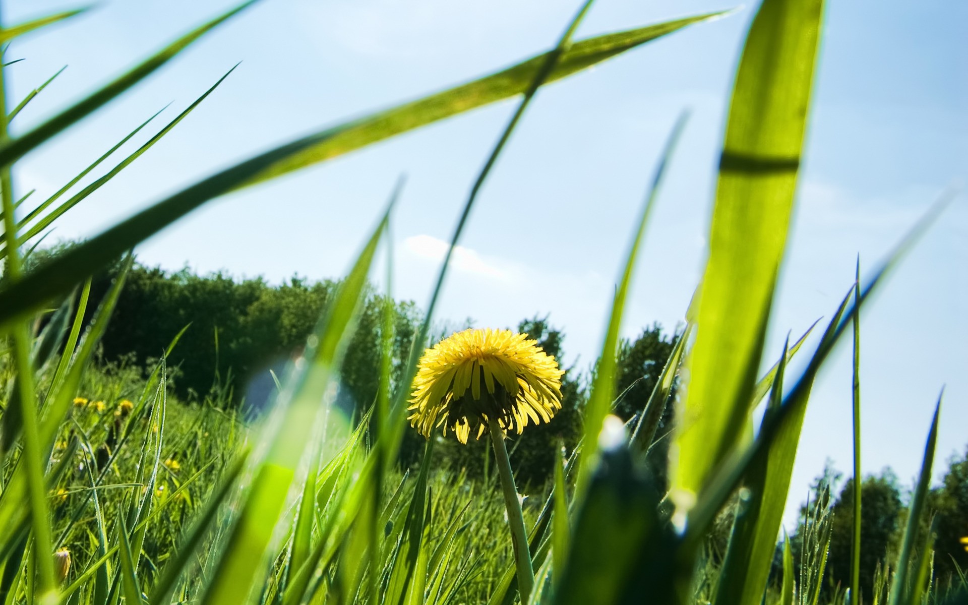 Prise de vue macro de gouttes de pluie sur l'herbe