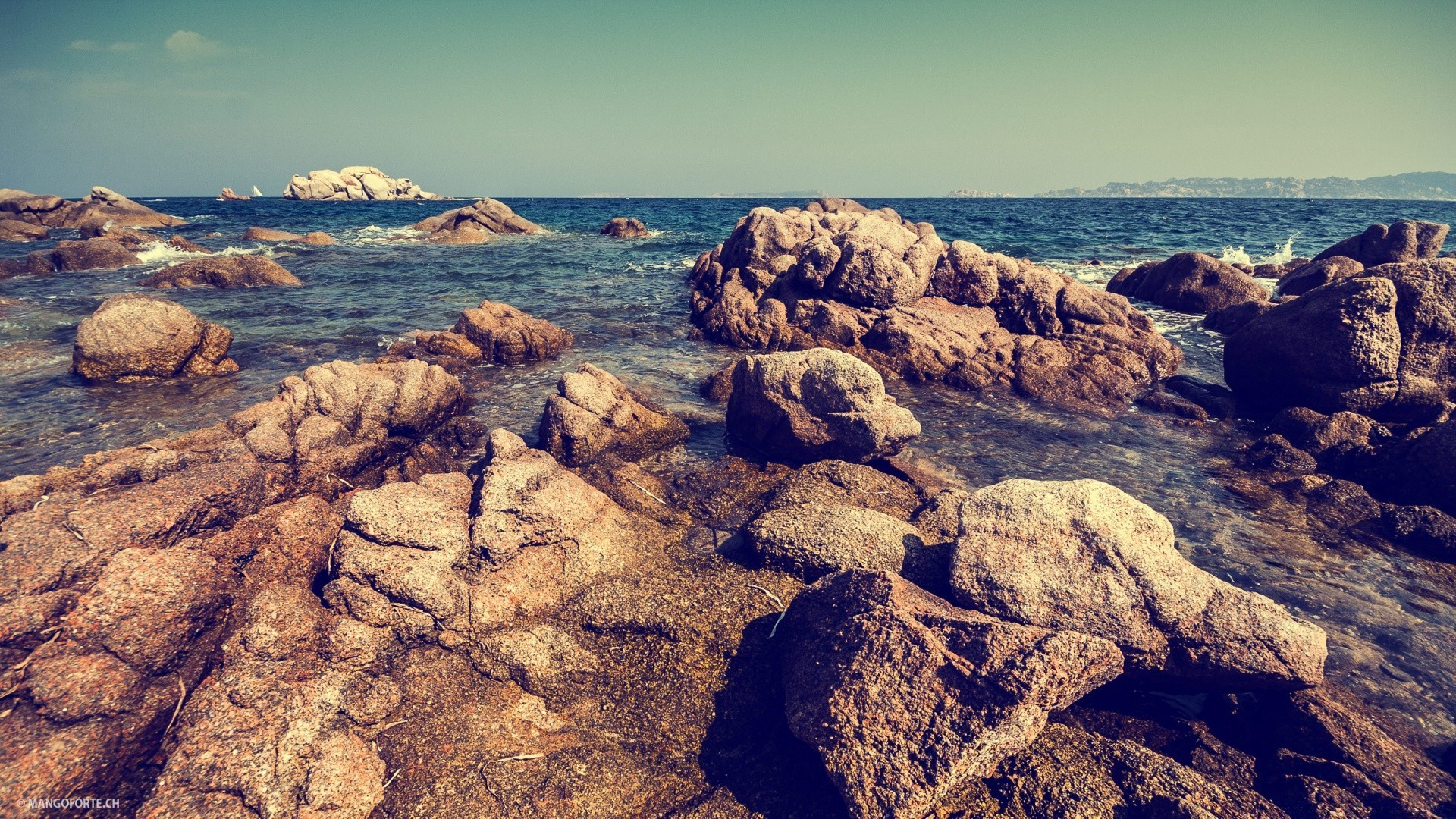 Pierres au bord de la mer. Beau ciel dans la paume de votre main