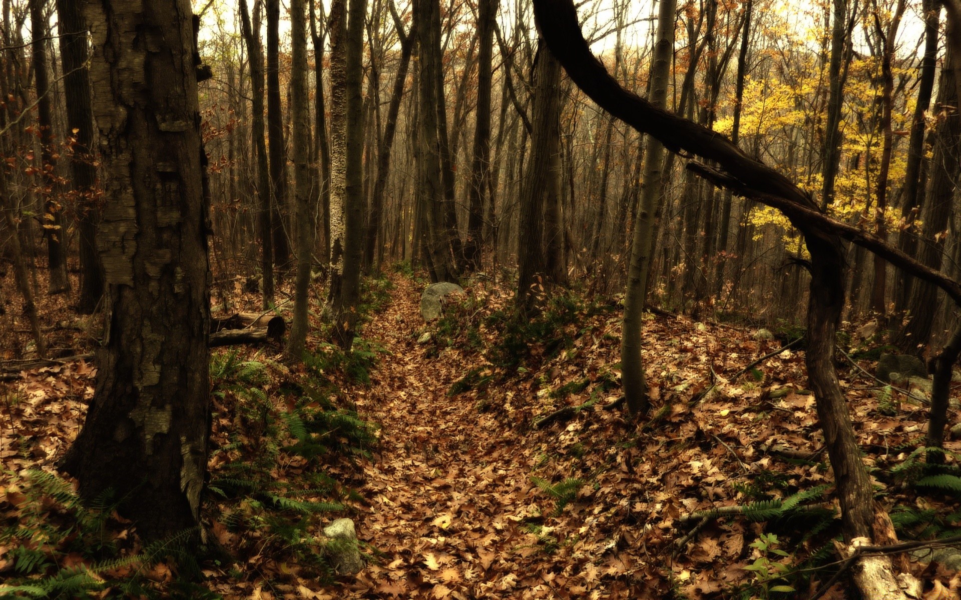 Grands arbres parsemés de feuilles