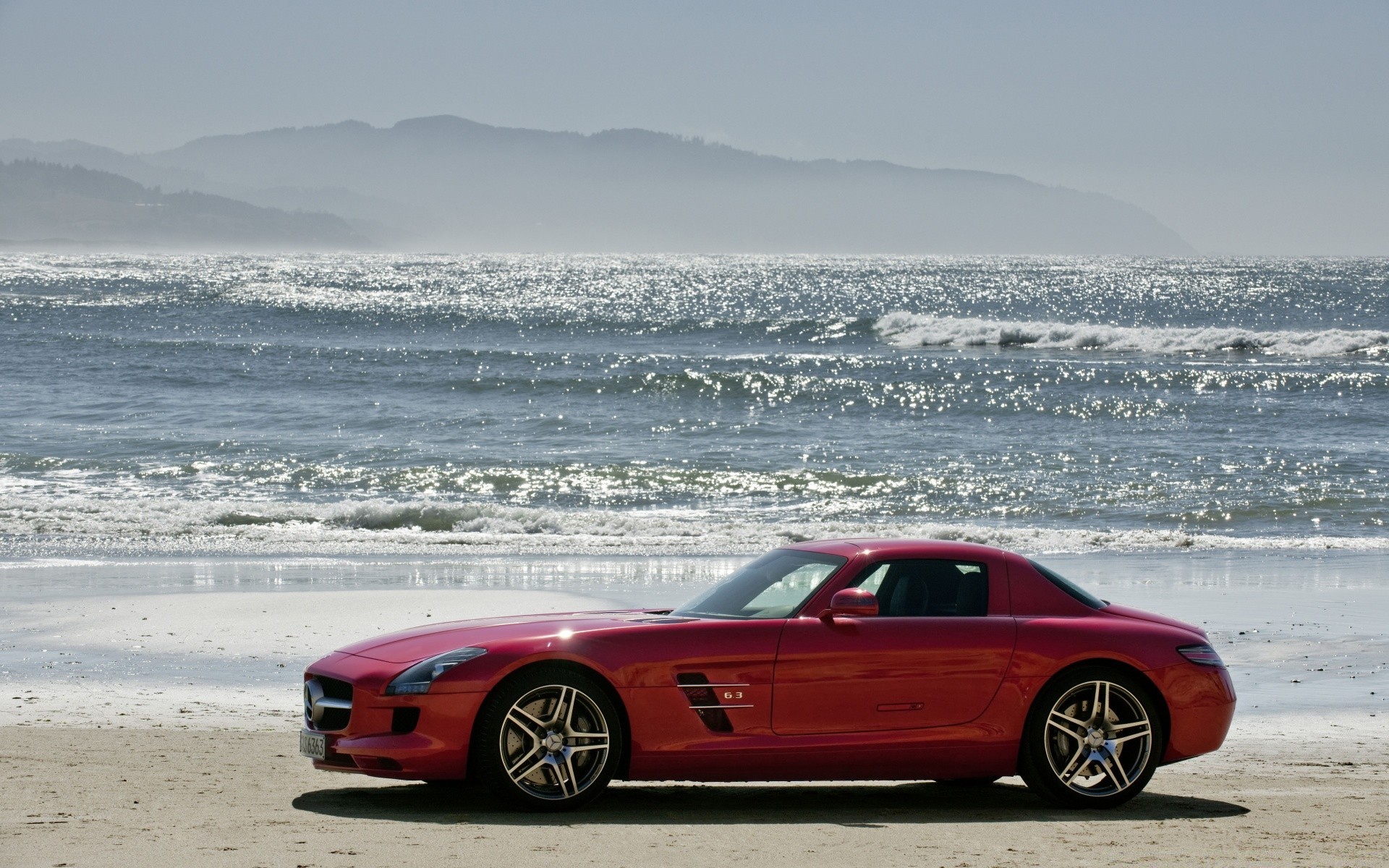 Mercedes noire sur l'asphalte plat par une journée ensoleillée