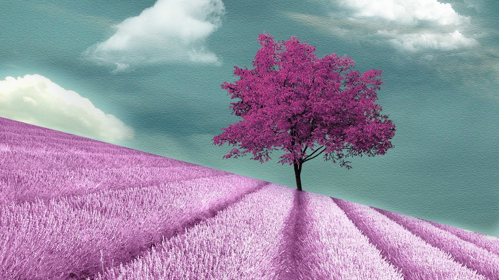 Combinaison de nuances violettes dans un paysage d'été sur fond de ciel