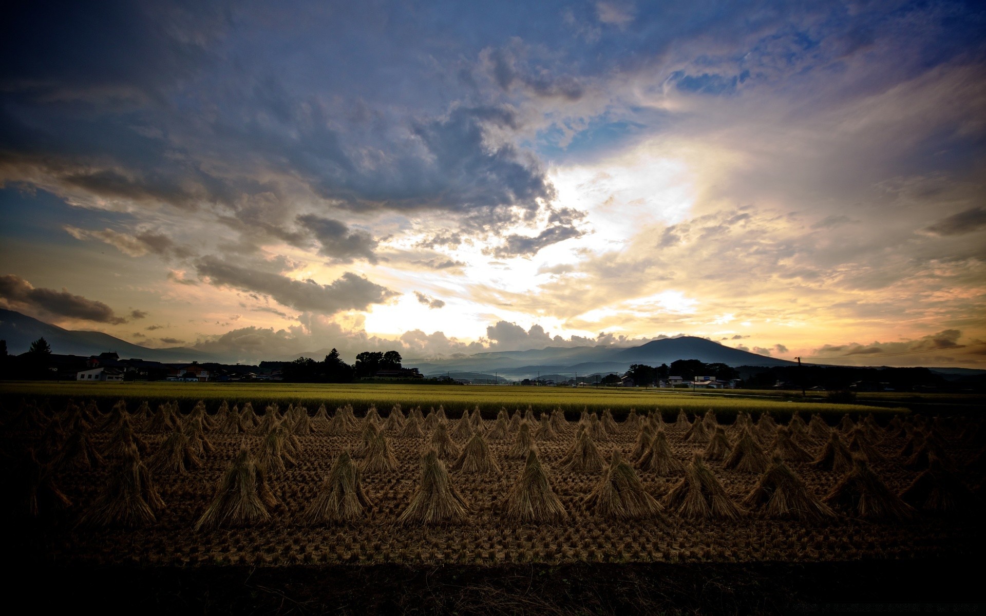 Beau coucher de soleil avec des nuages dans la nature