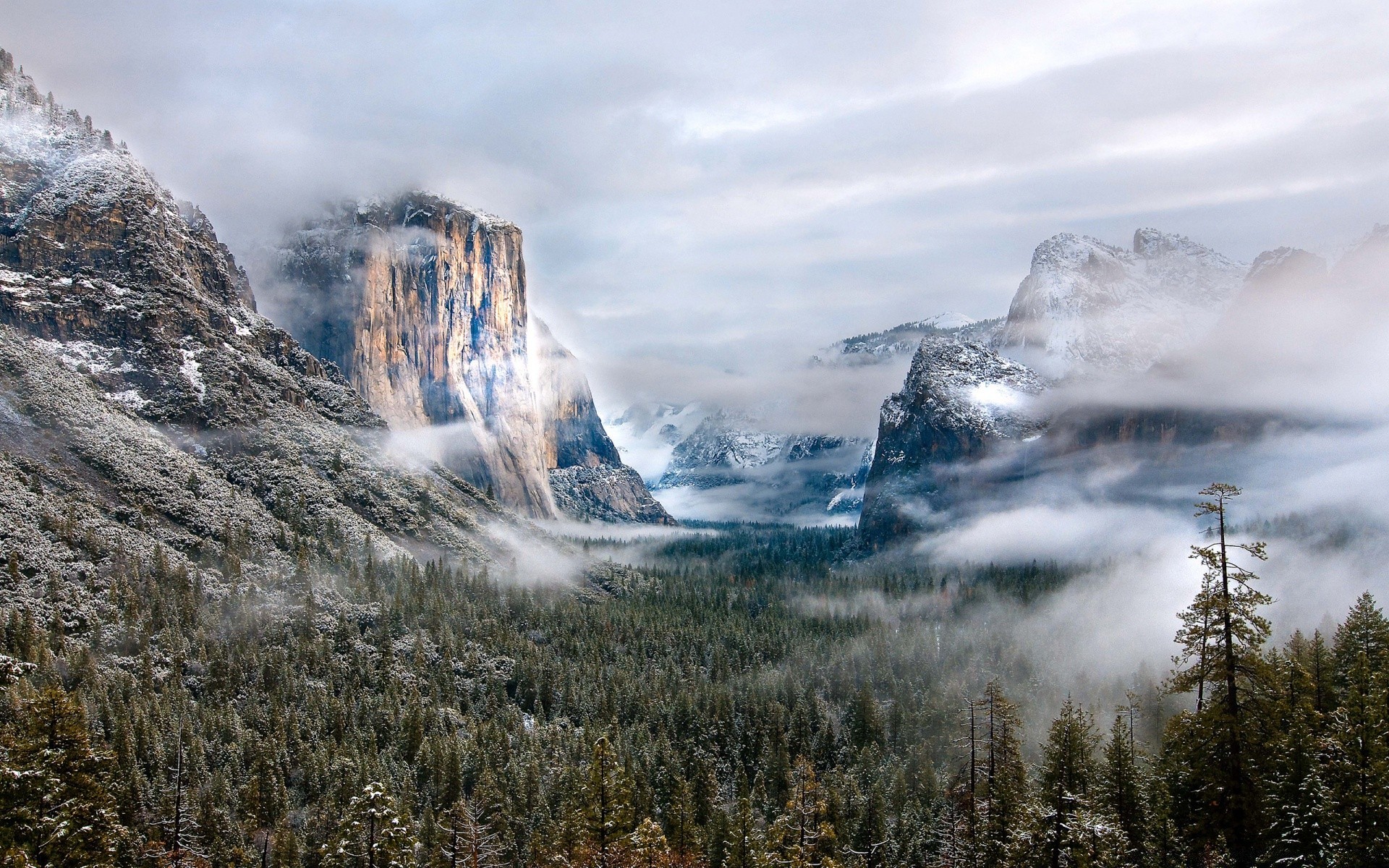 Nuages sur la vallée de la forêt dans les montagnes