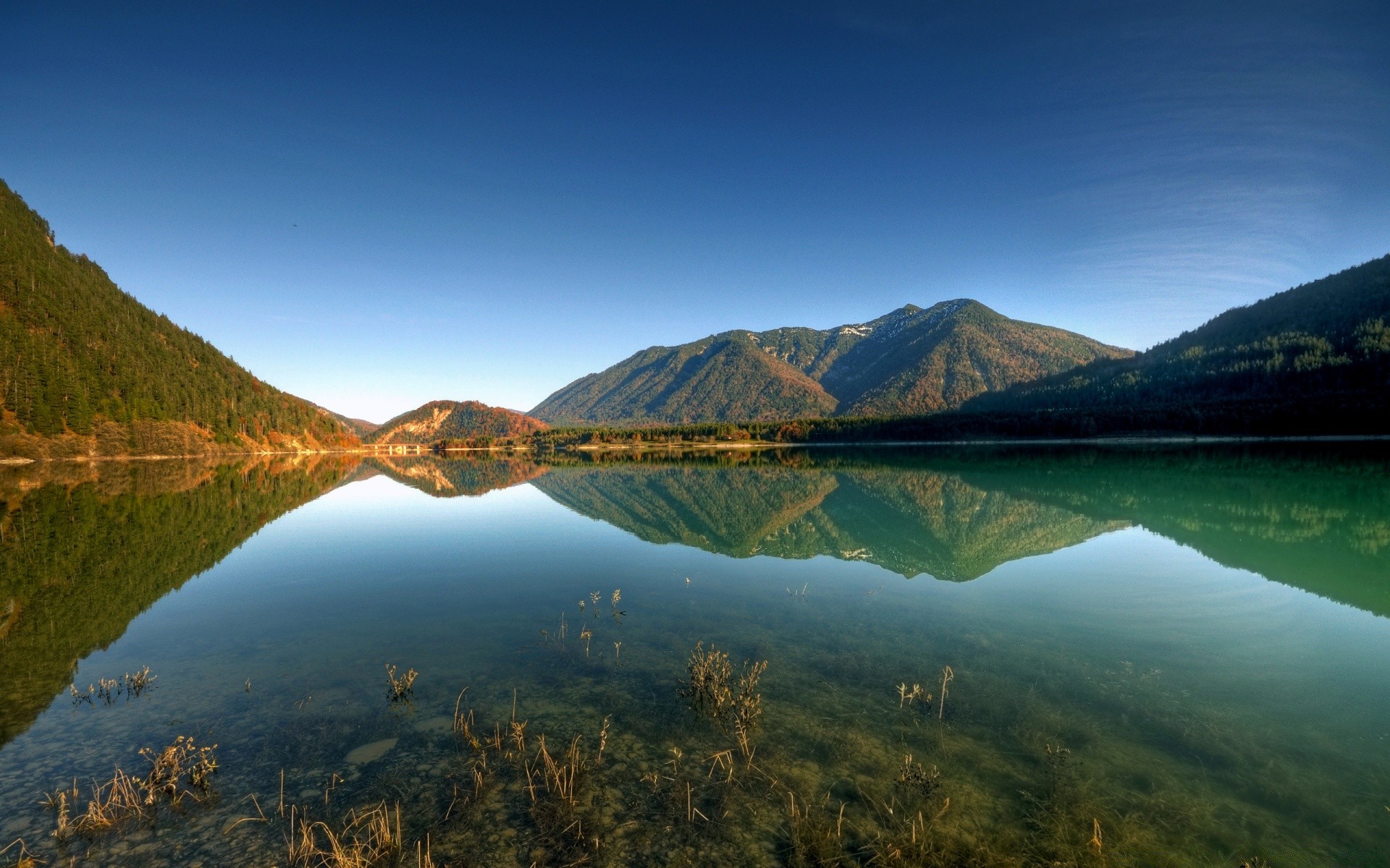 Reflet pur des montagnes et des arbres dans le lacReflet pur des montagnes et des arbres dans le lac