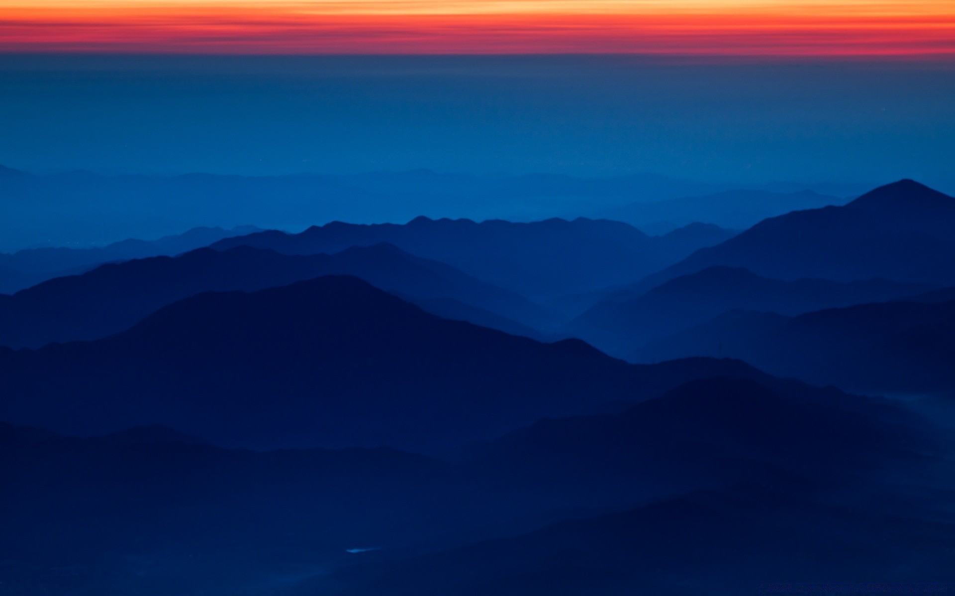 Paysage avec le ciel et les montagnes au coucher du soleil