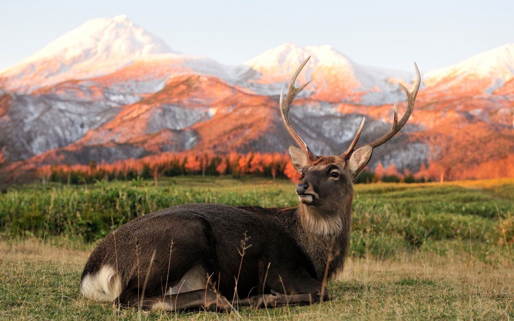 Coucher de soleil dans les montagnes sur fond de forêt d'hiverCoucher de soleil dans les montagnes sur fond de forêt d'hiver
