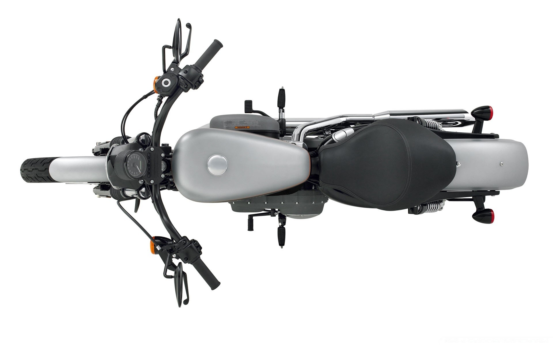 Moto argentée, vue de dessus