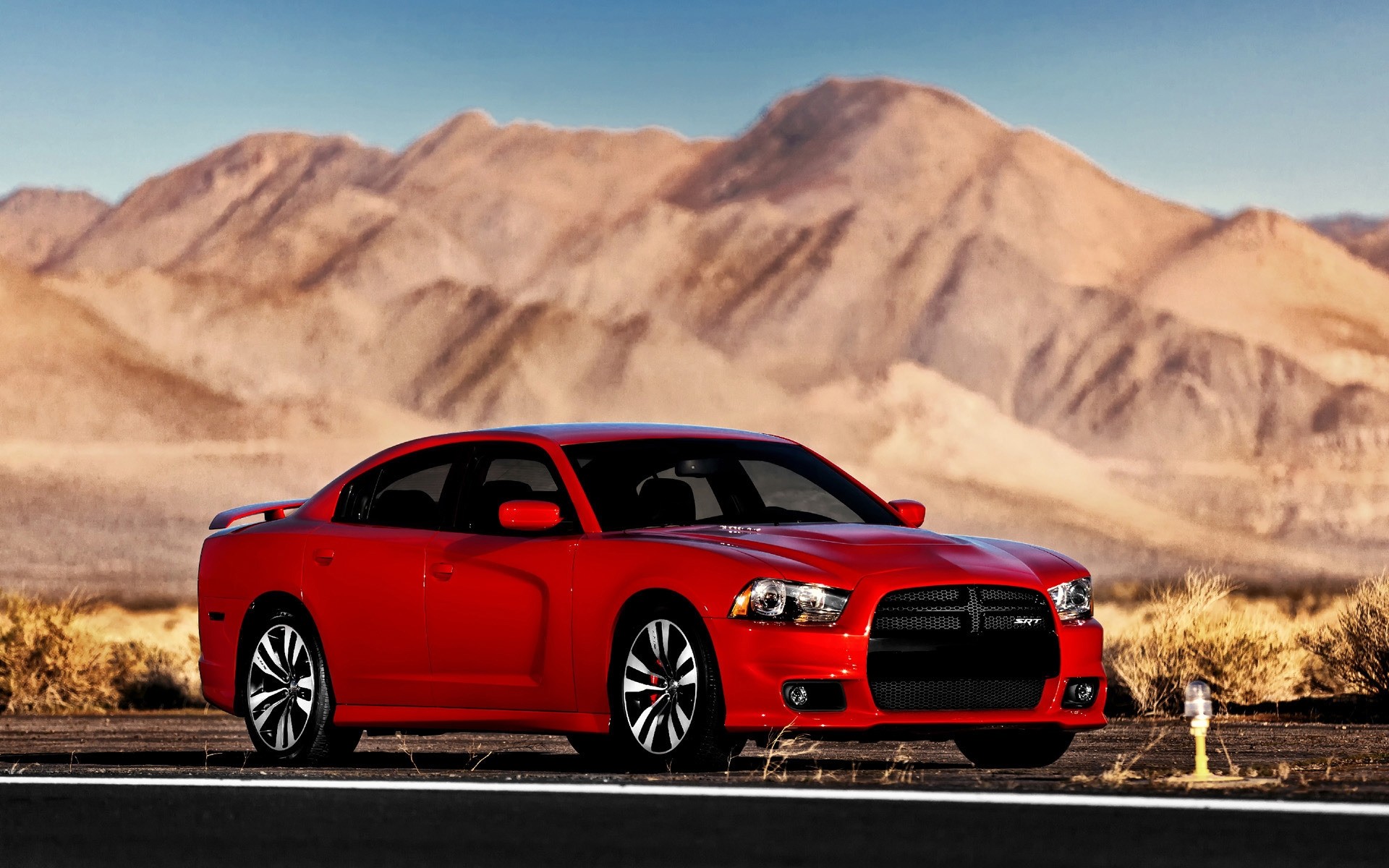 Voiture de sport rouge au milieu d'une route étroite sur fond d'arbres d'automne