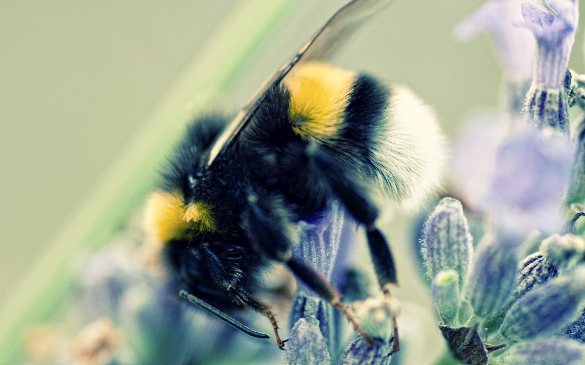 Une abeille recueille le nectar d'une plante à fleurs roses