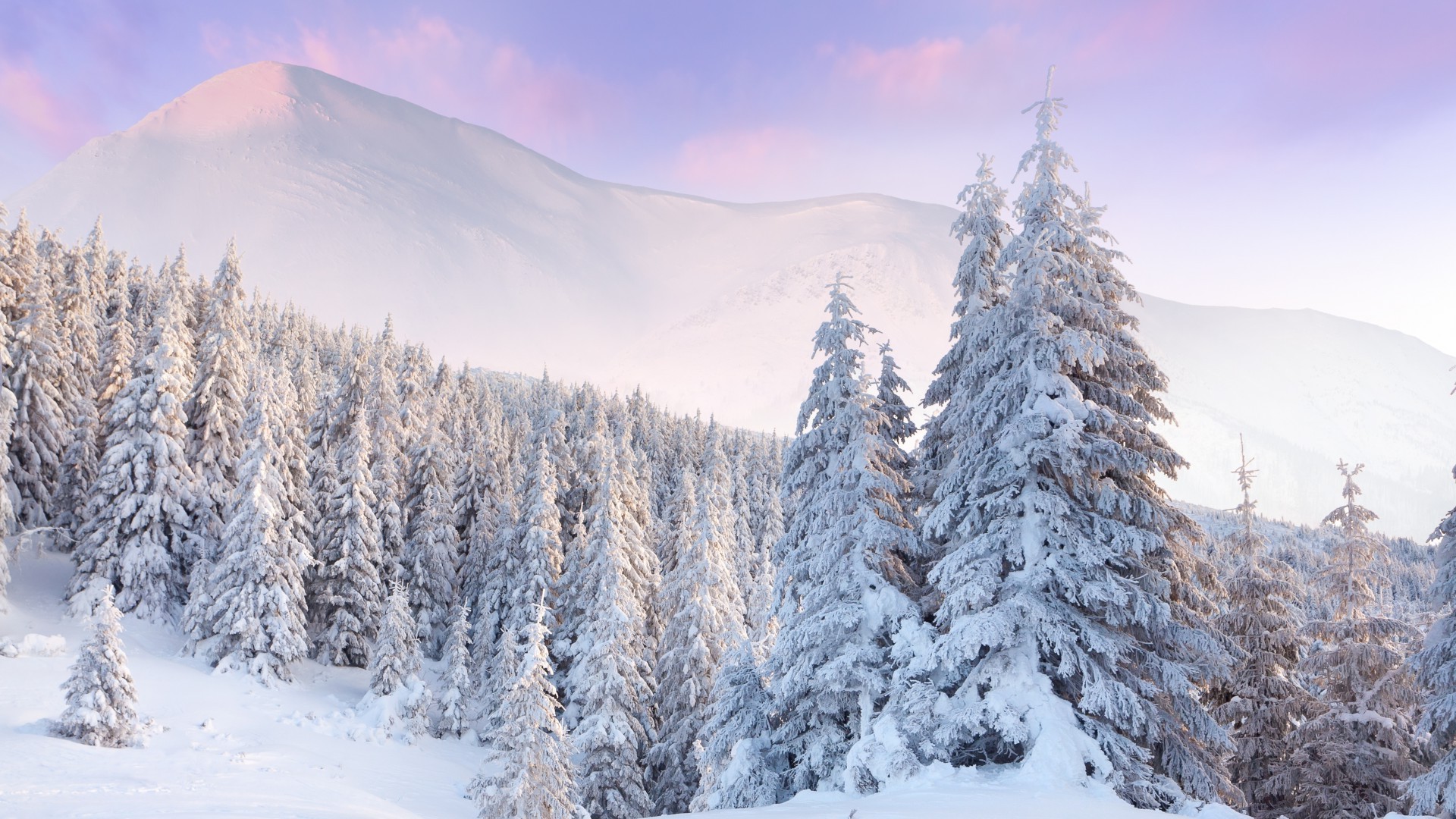 Arbres de Noël zindevelye sont couverts de neige sur le flanc de la montagne