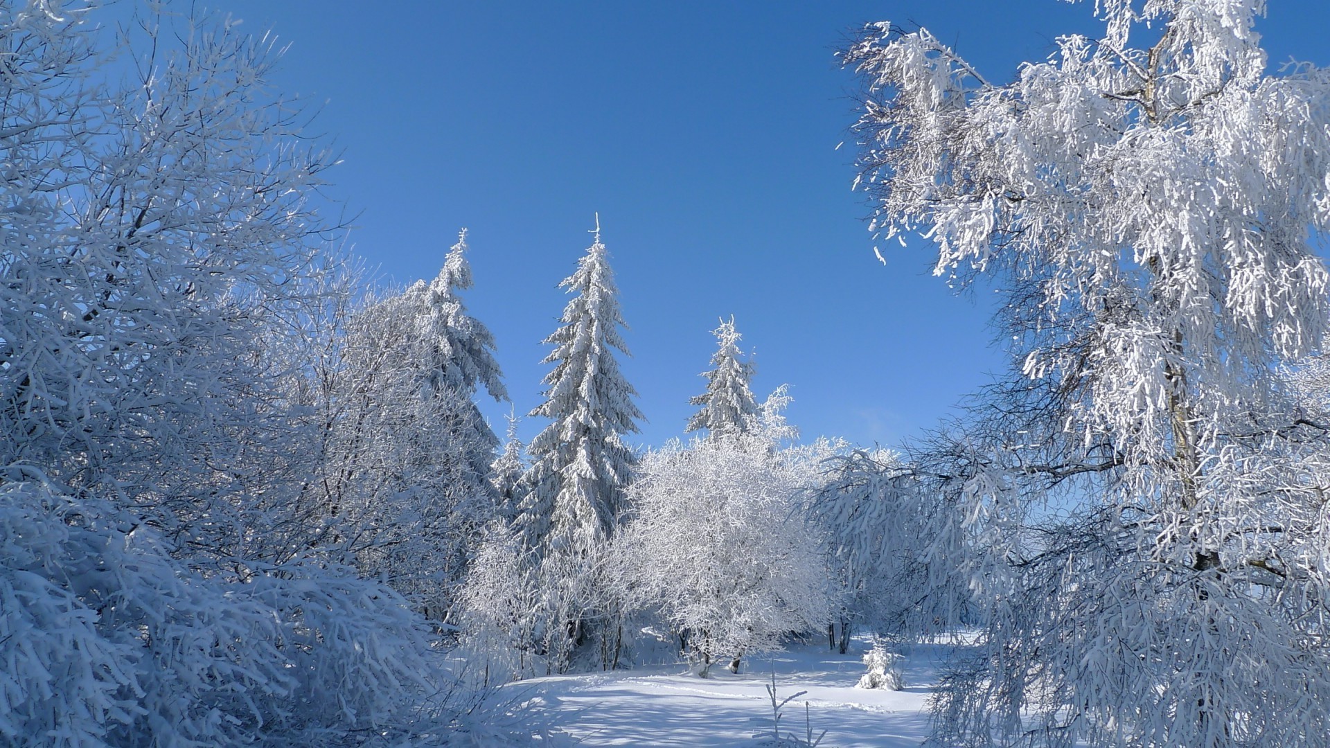 Arbres dans une rangée recouverte de neige sur une journée glaciale