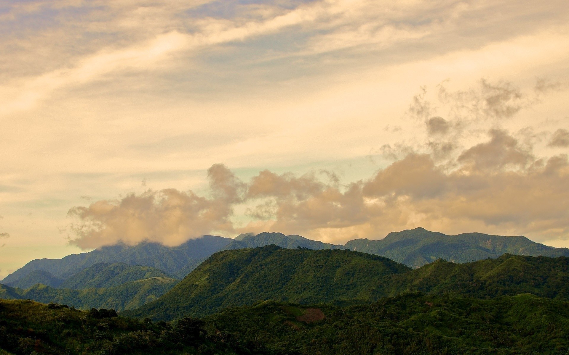 Coucher de soleil brumeux dans les montagnes de l'asieCoucher de soleil brumeux dans les montagnes de l'Asie