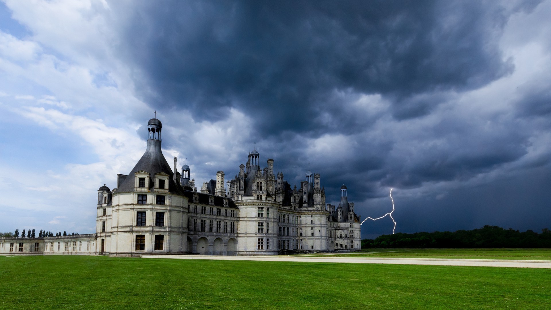 Ville ensoleillée européenne. Le soleil à travers les nuages.. V