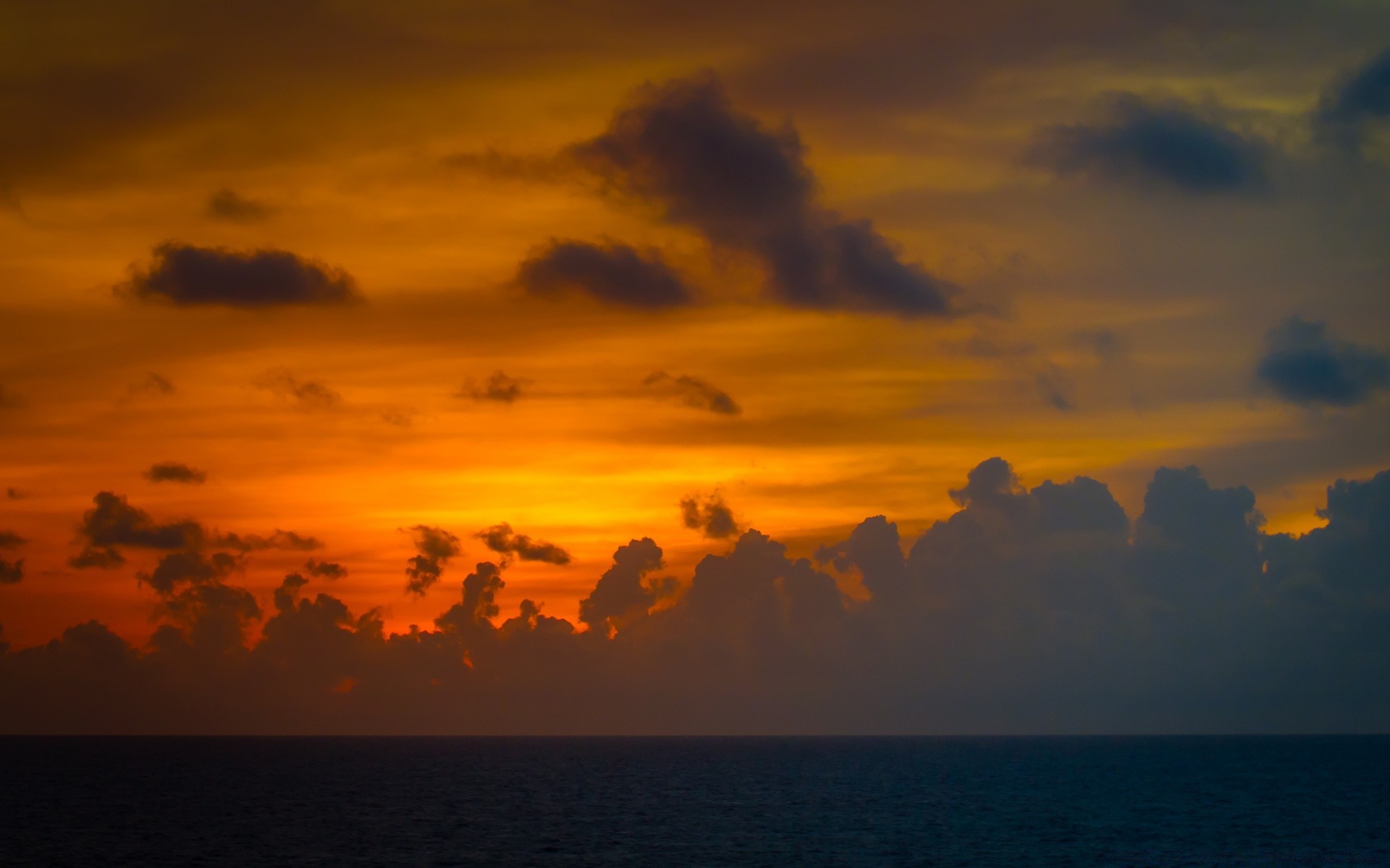 Coucher du soleil. Les nuages sont tombés au-dessus de nous