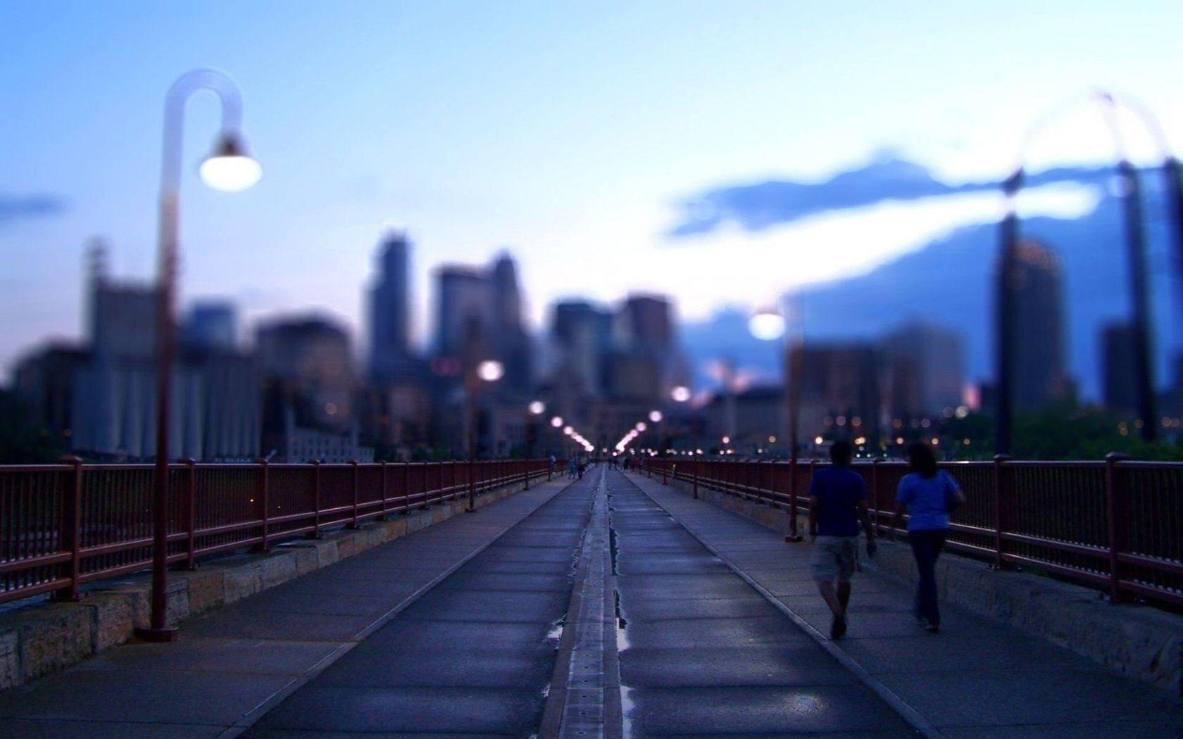 Promenade dans la ville de nuit sur le pont