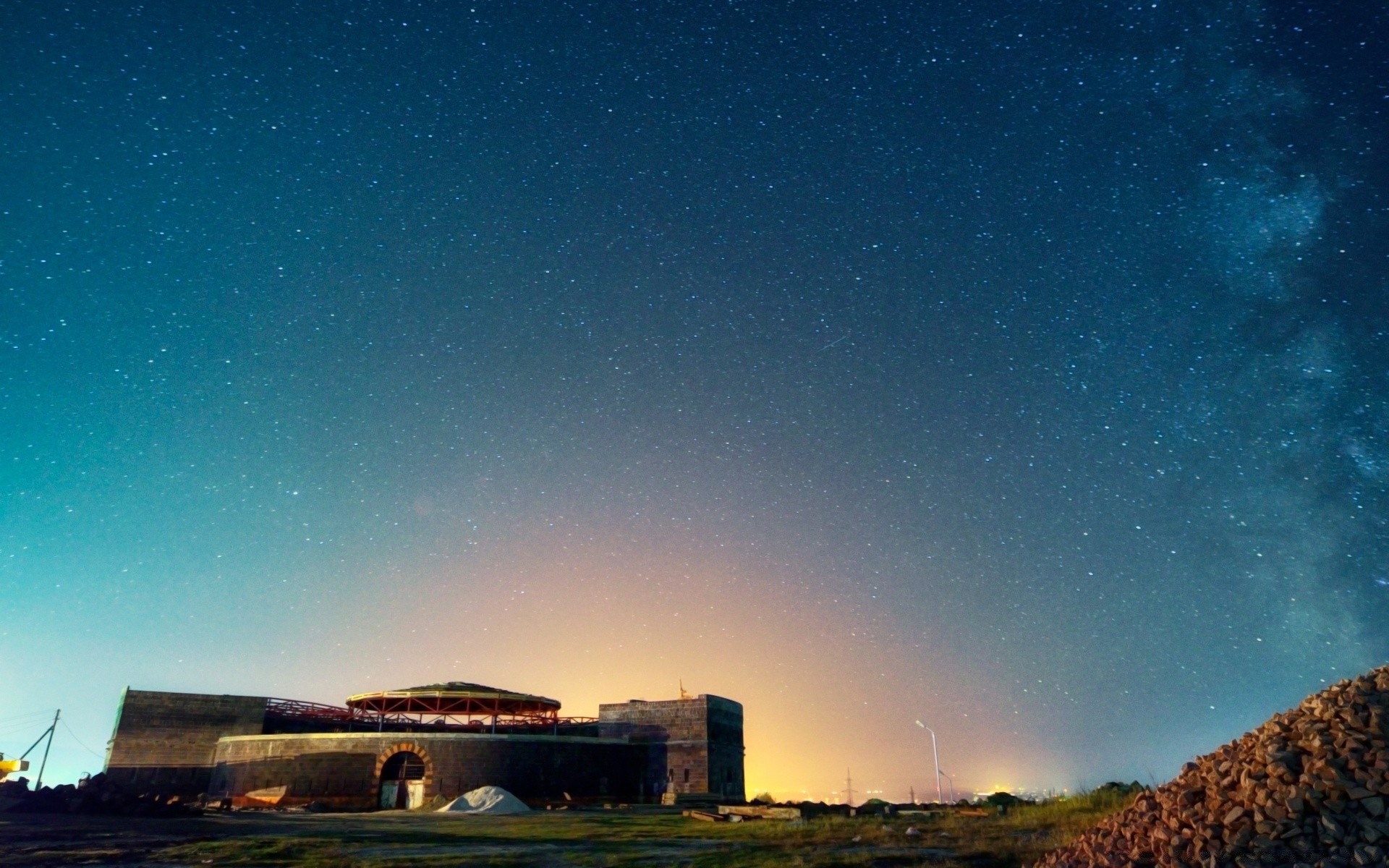 Bateau dans la rivière de nuit sur fond de montagnes sombres