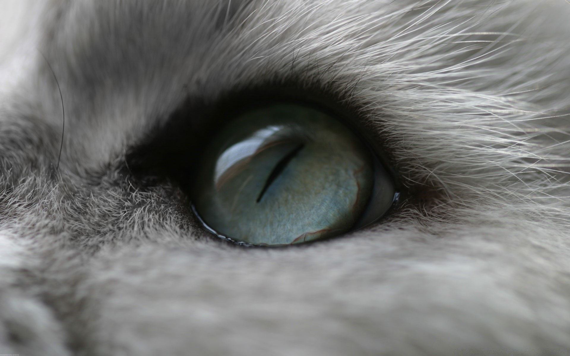 Oeil bleu d'un chat gris