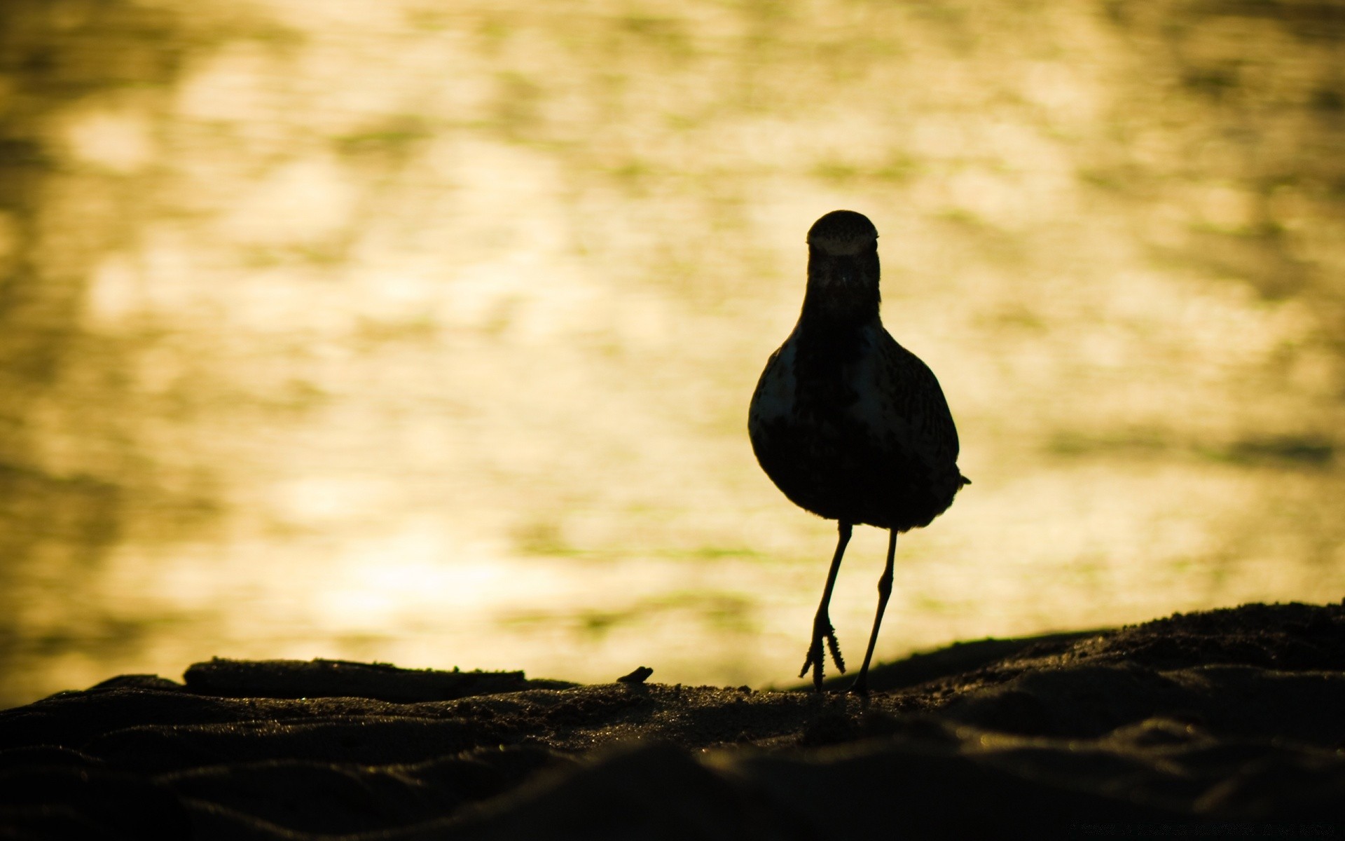 Oiseau regardant beau coucher de soleil au bord de la mer
