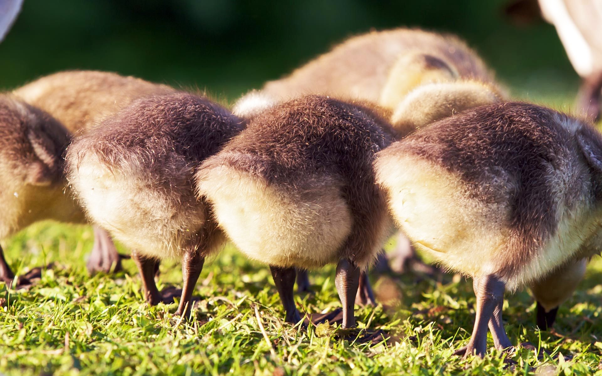 Jeunes canetons sur l'herbe, vue arrière