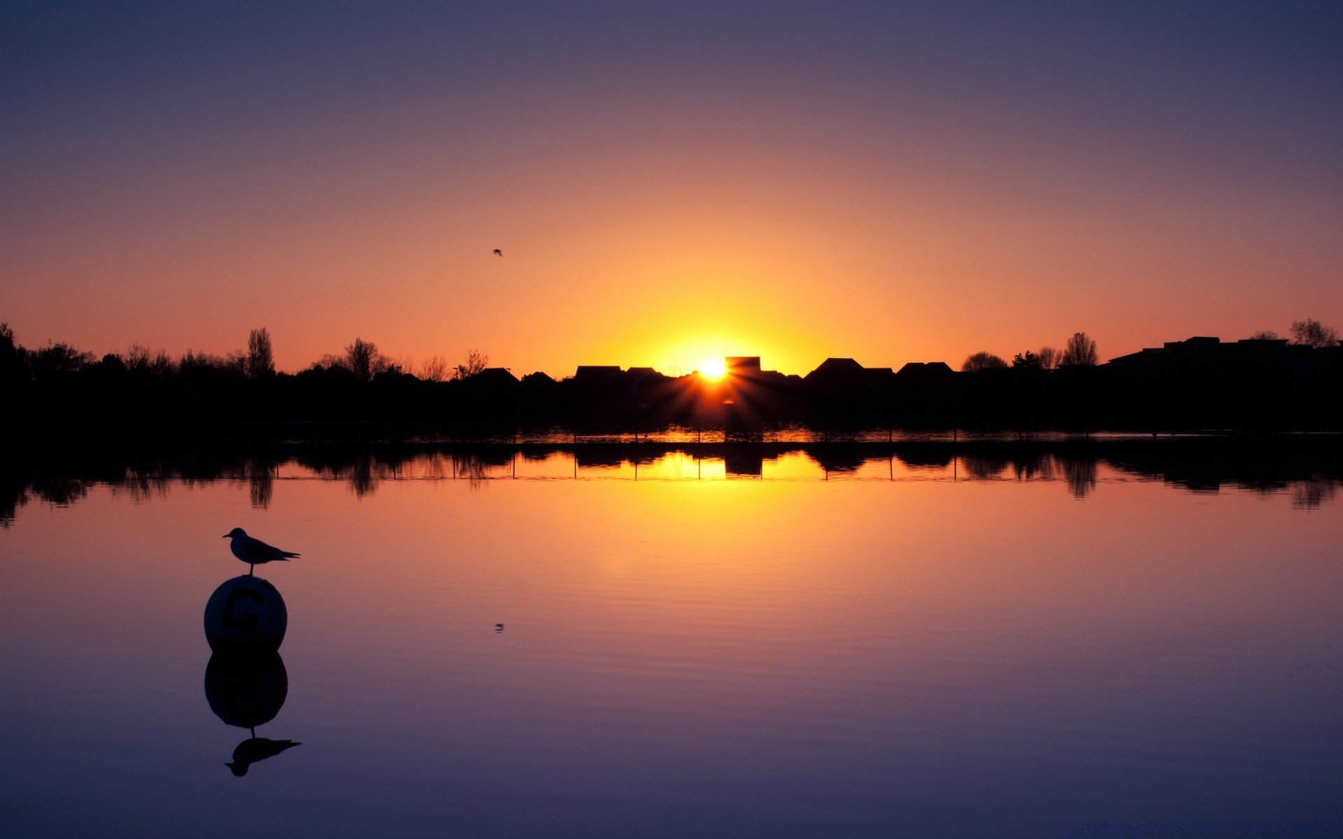 Oiseau assis sur une pierre dans l'eau au coucher du soleil