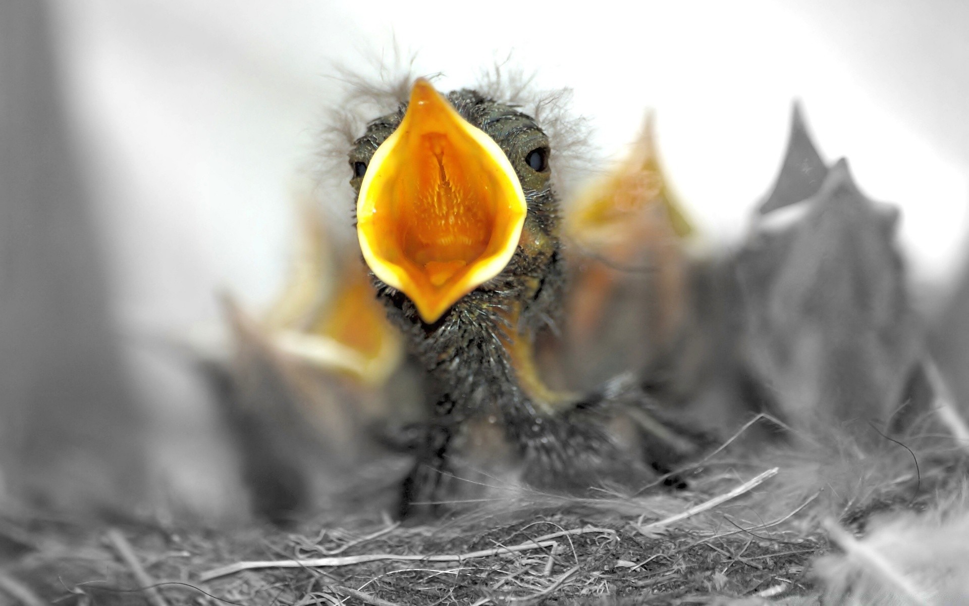 Poussin à tête jaune crie dans le nid