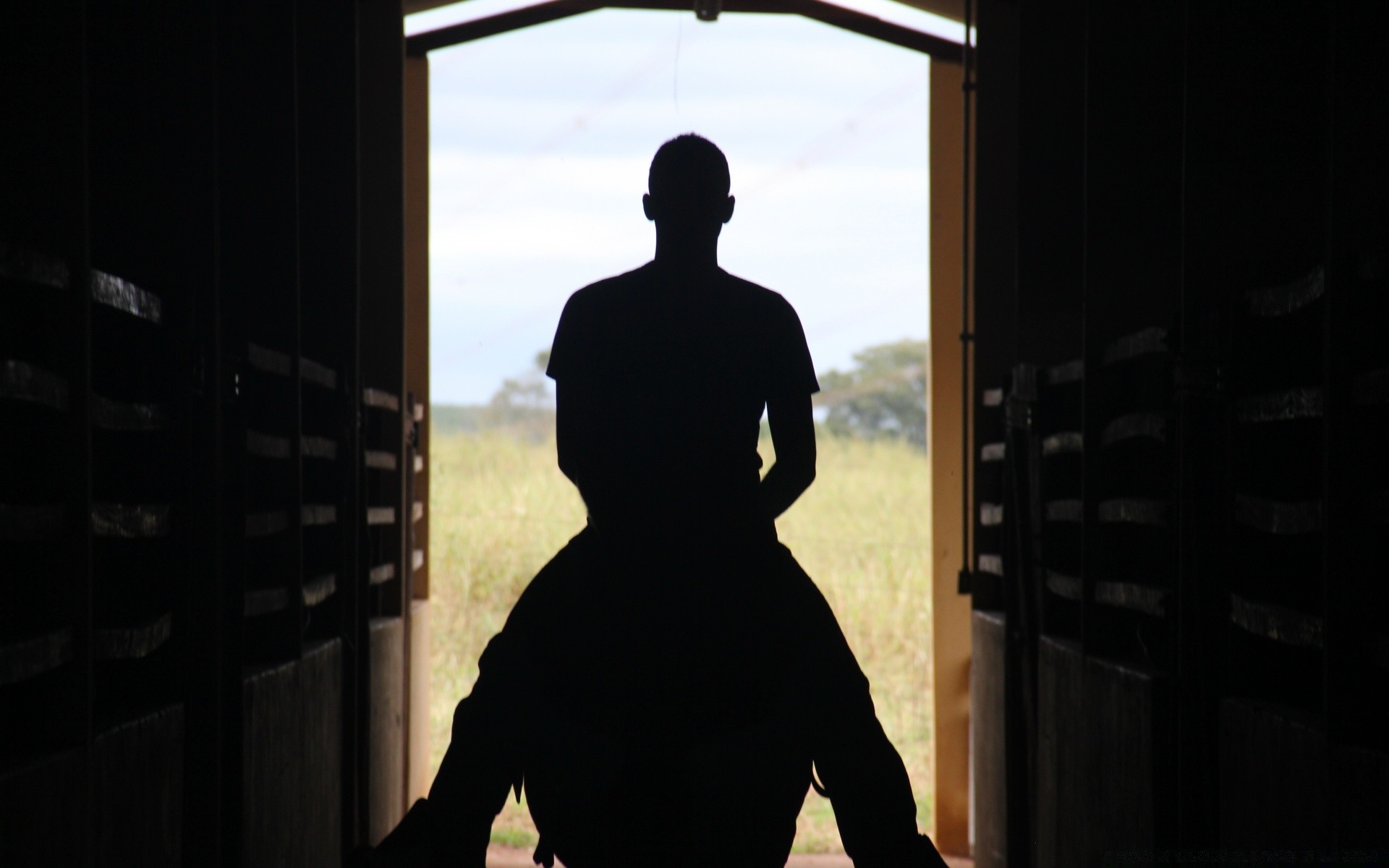 Fenêtre en noir et blanc donnant sur un bâtiment solitaire