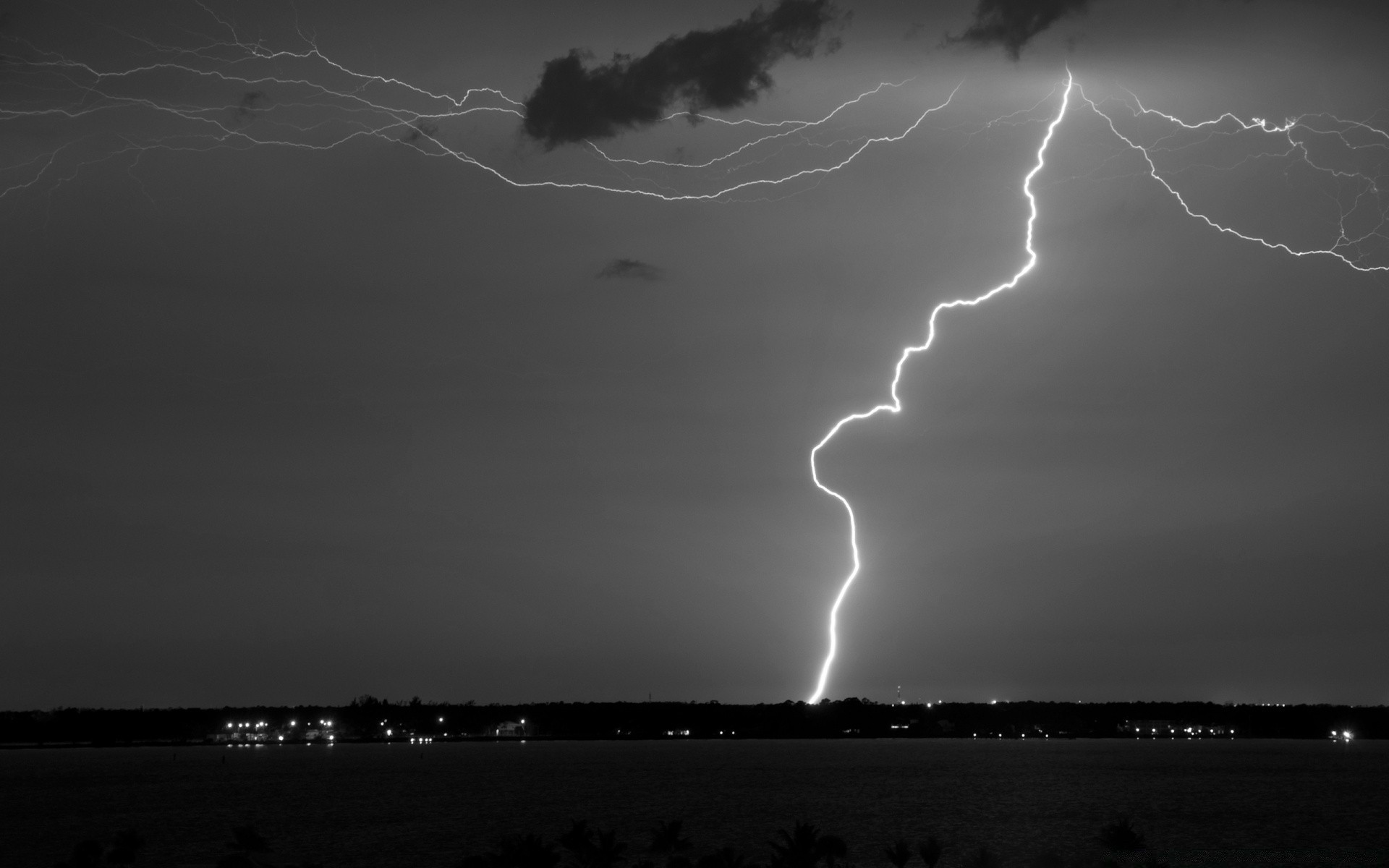 Une tempête dessine un paysage avec la foudre dans le ciel nocturne