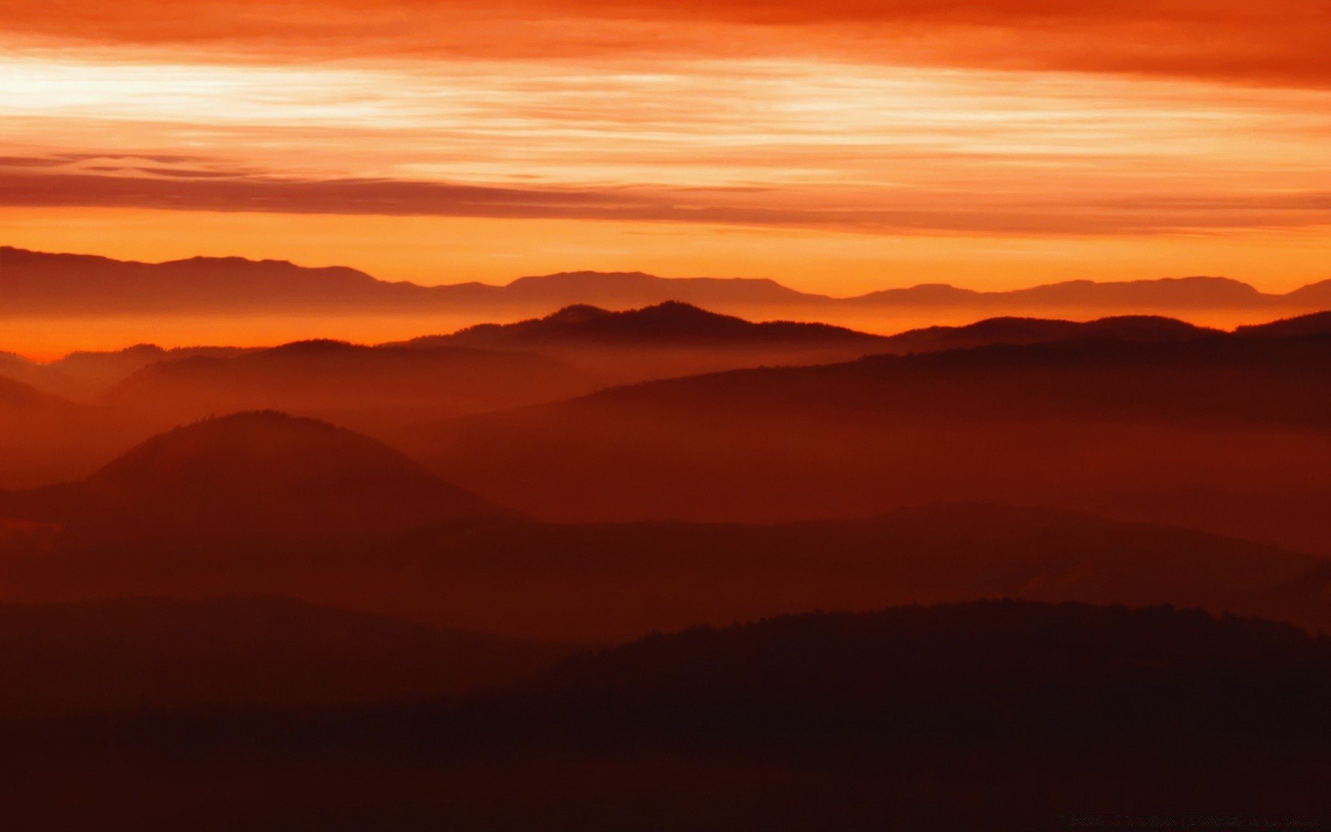 Ciel orange-bleu dans les rayons du coucher du soleil