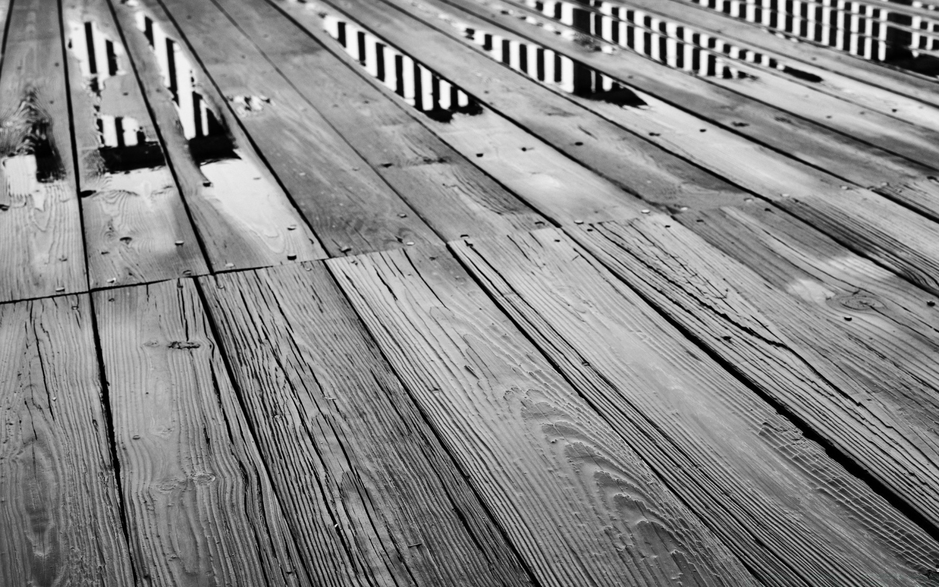 Plancher en bois et flaques d'eau sur le sol