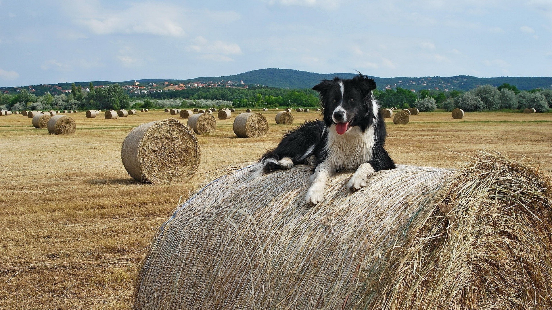 Chien couché sur une botte de foin