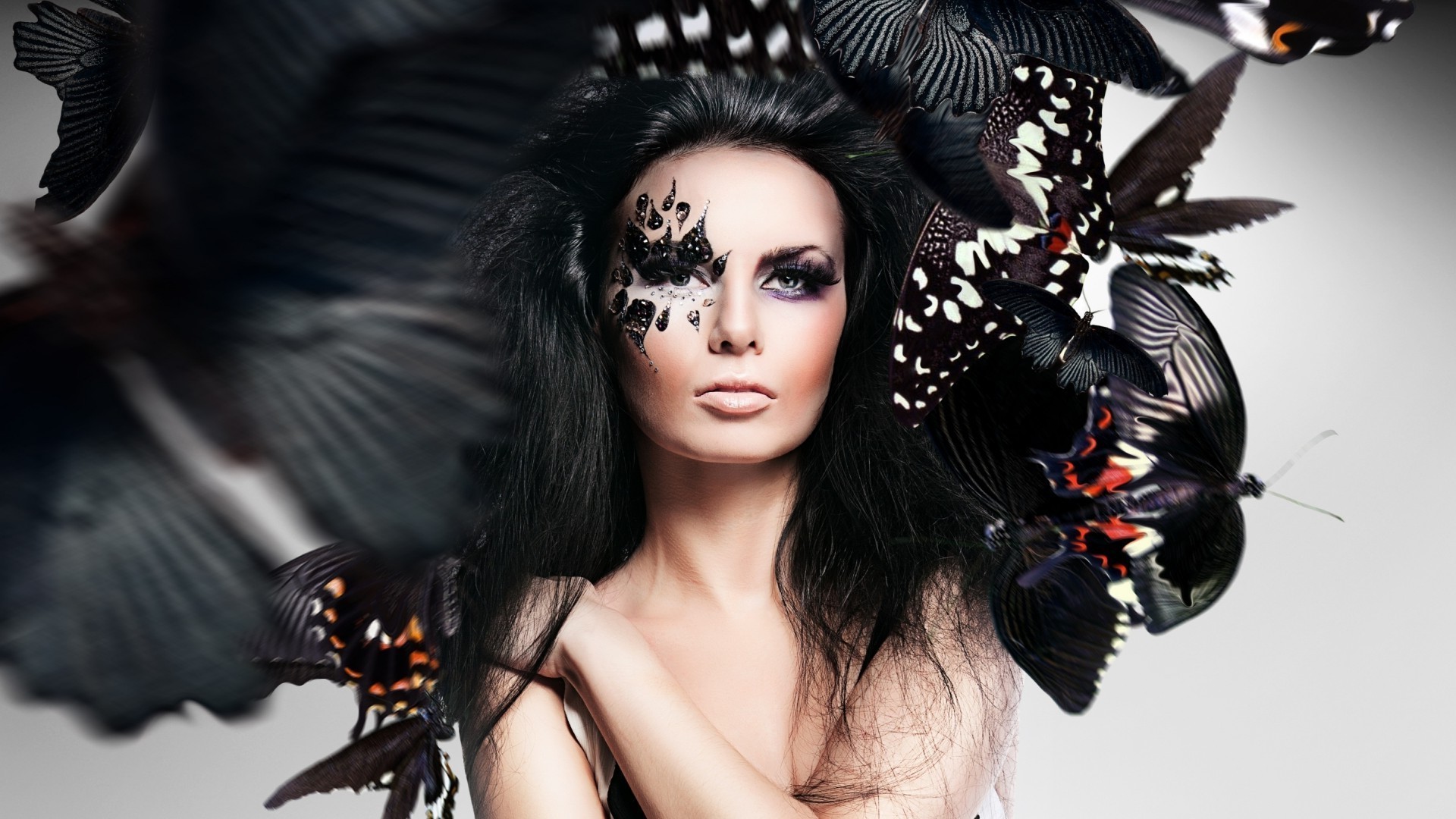 Belle brune avec un papillon