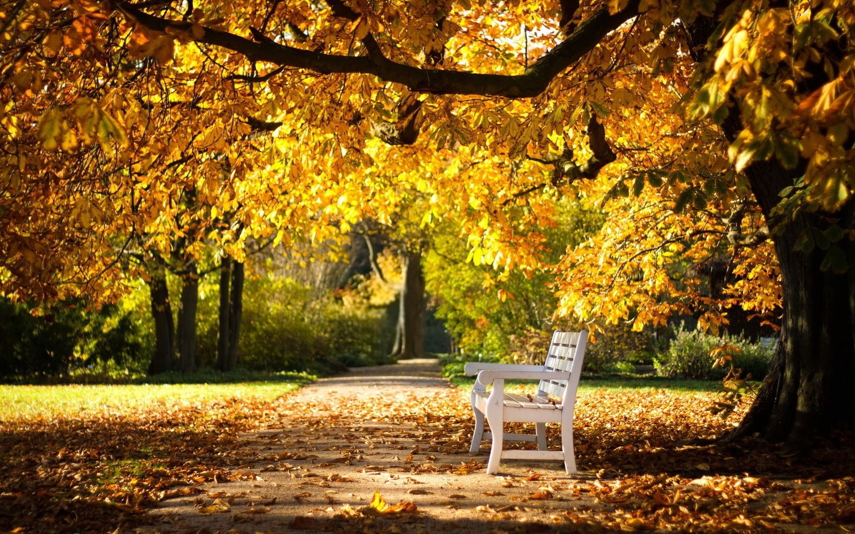 Banc de bois de la nature, à l'automne