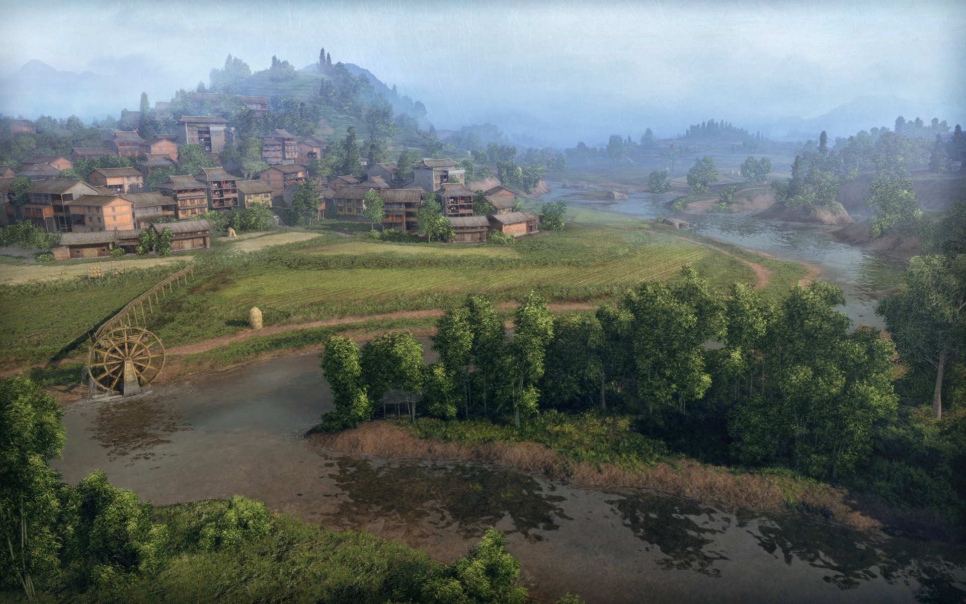 Paysage de la belle automne triste: arbres, surface de l'eau, herbe