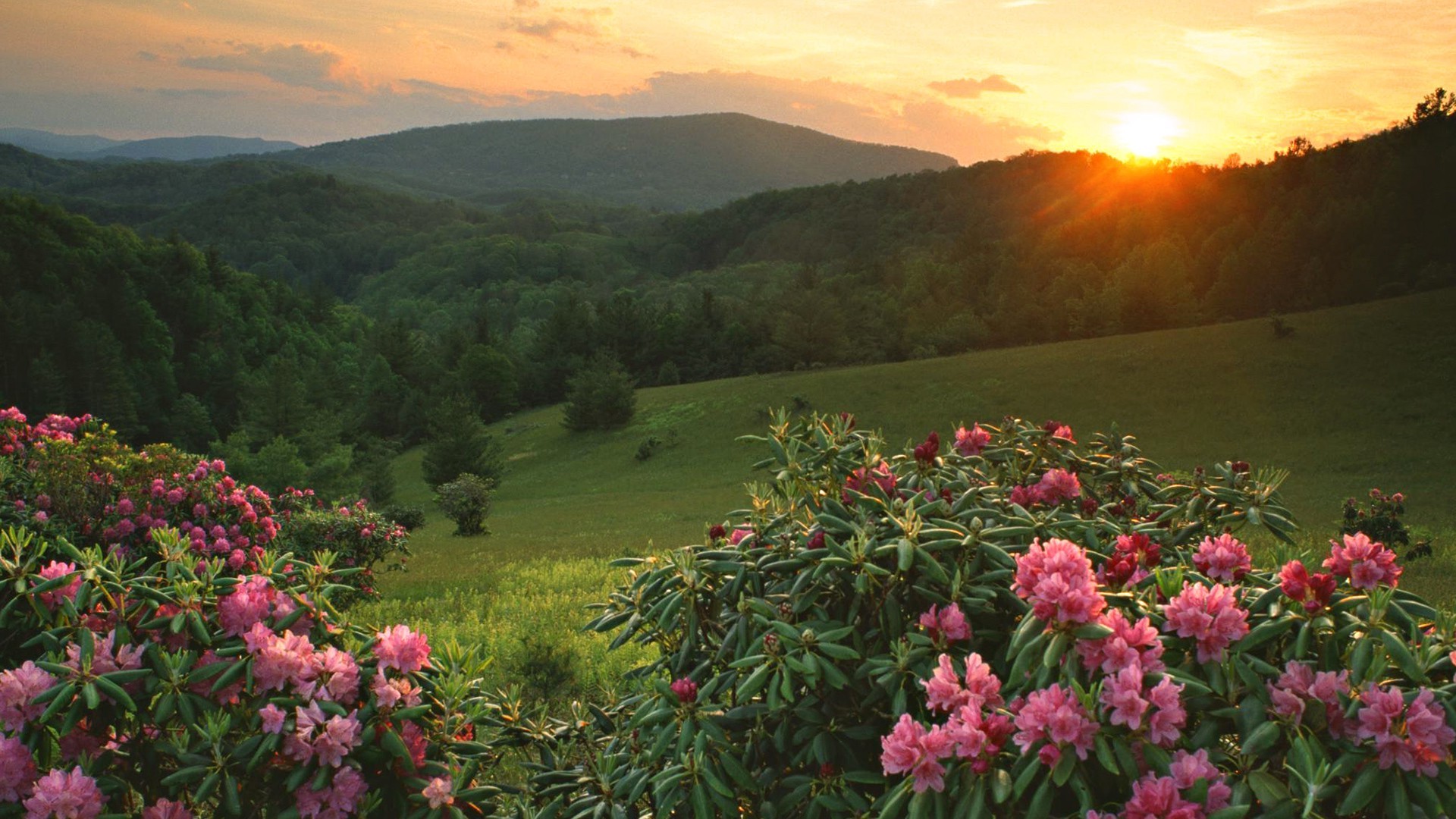 Paysage de montagne au coucher du soleil