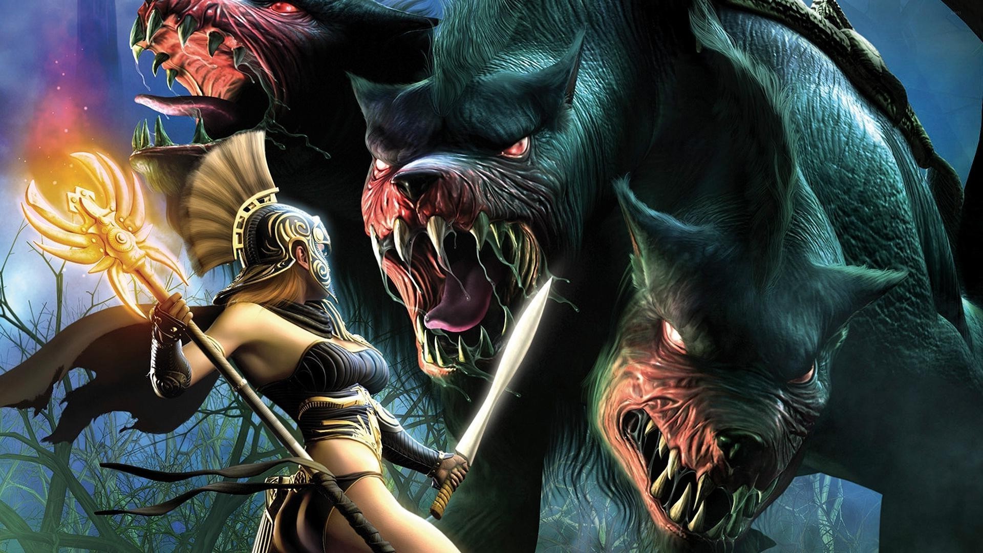 Dessin graphique de Valkyrie. Chien à trois têtes de Baskerville