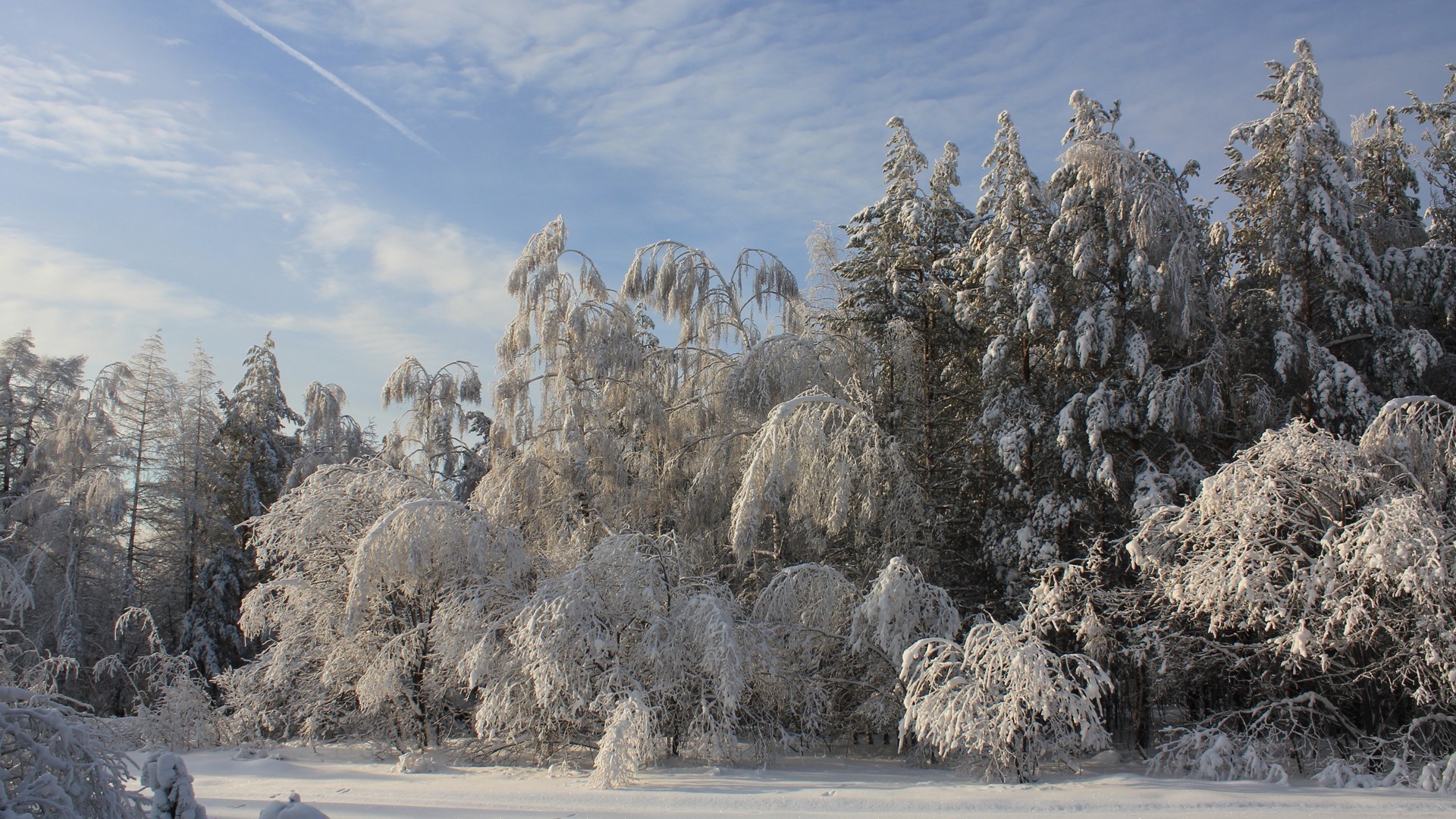 Arbres d'hiver noir et blanc dans le paysage de neige