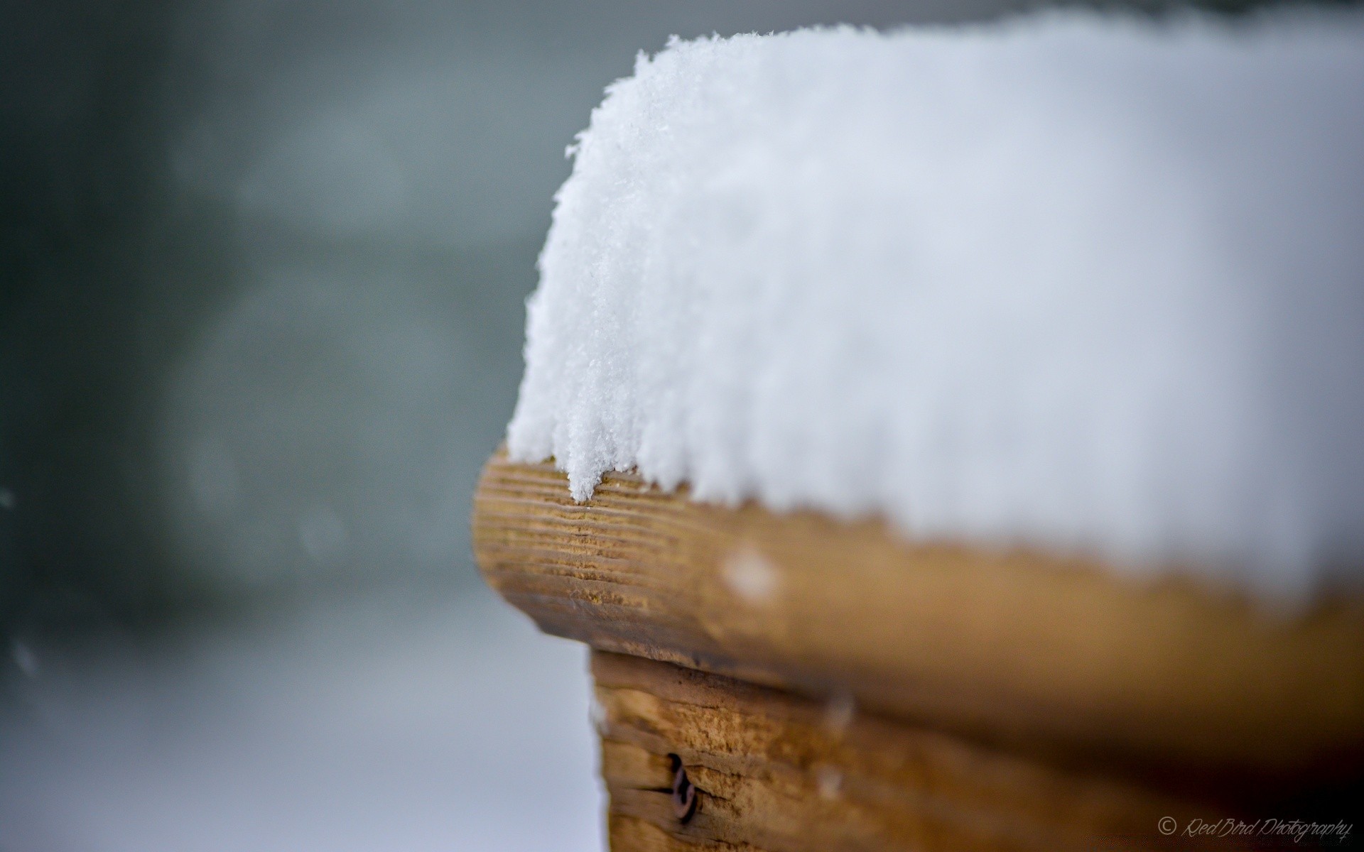 Neige blanche floue sur bois