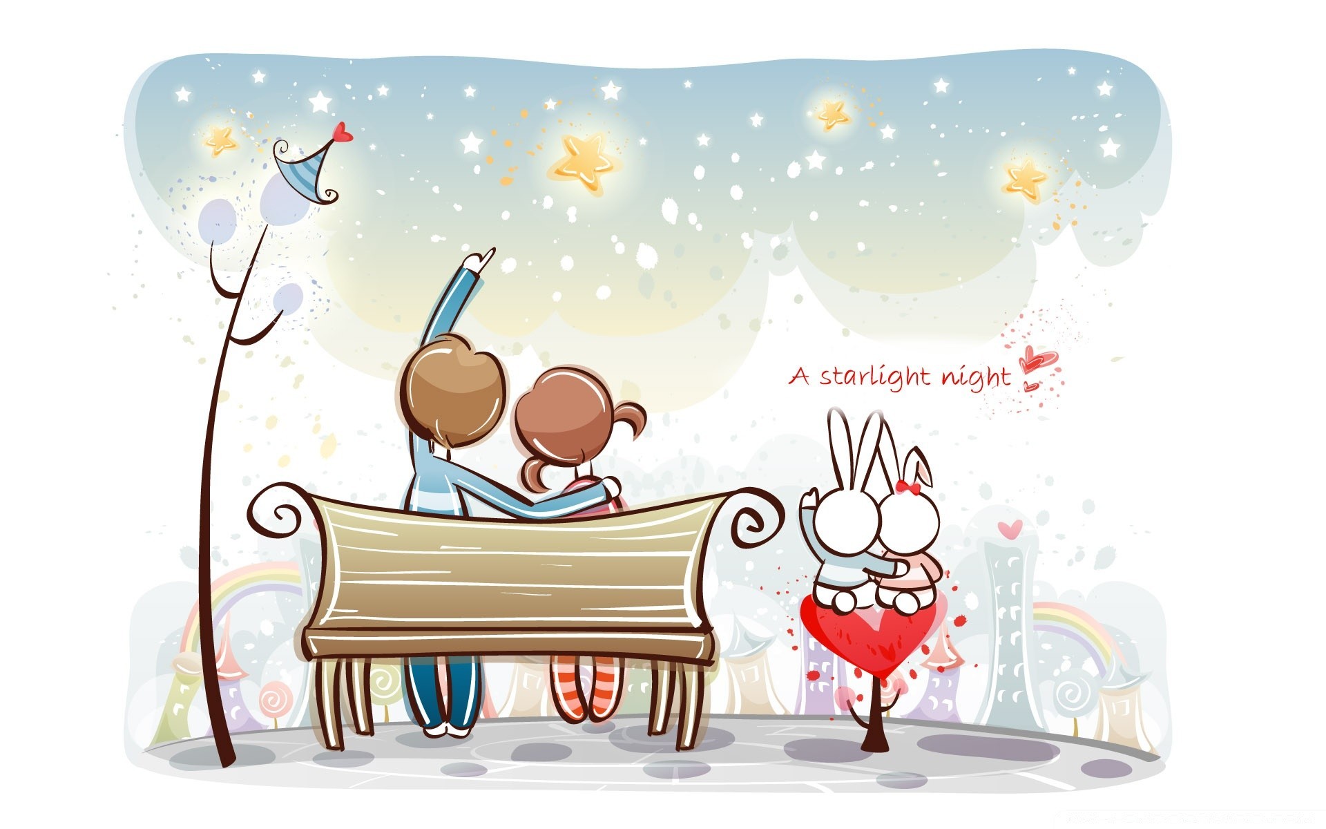 Couple de personnes et couple de lapins regardant le ciel étoiléCouple de personnes et couple de lapins regardant le ciel étoilé