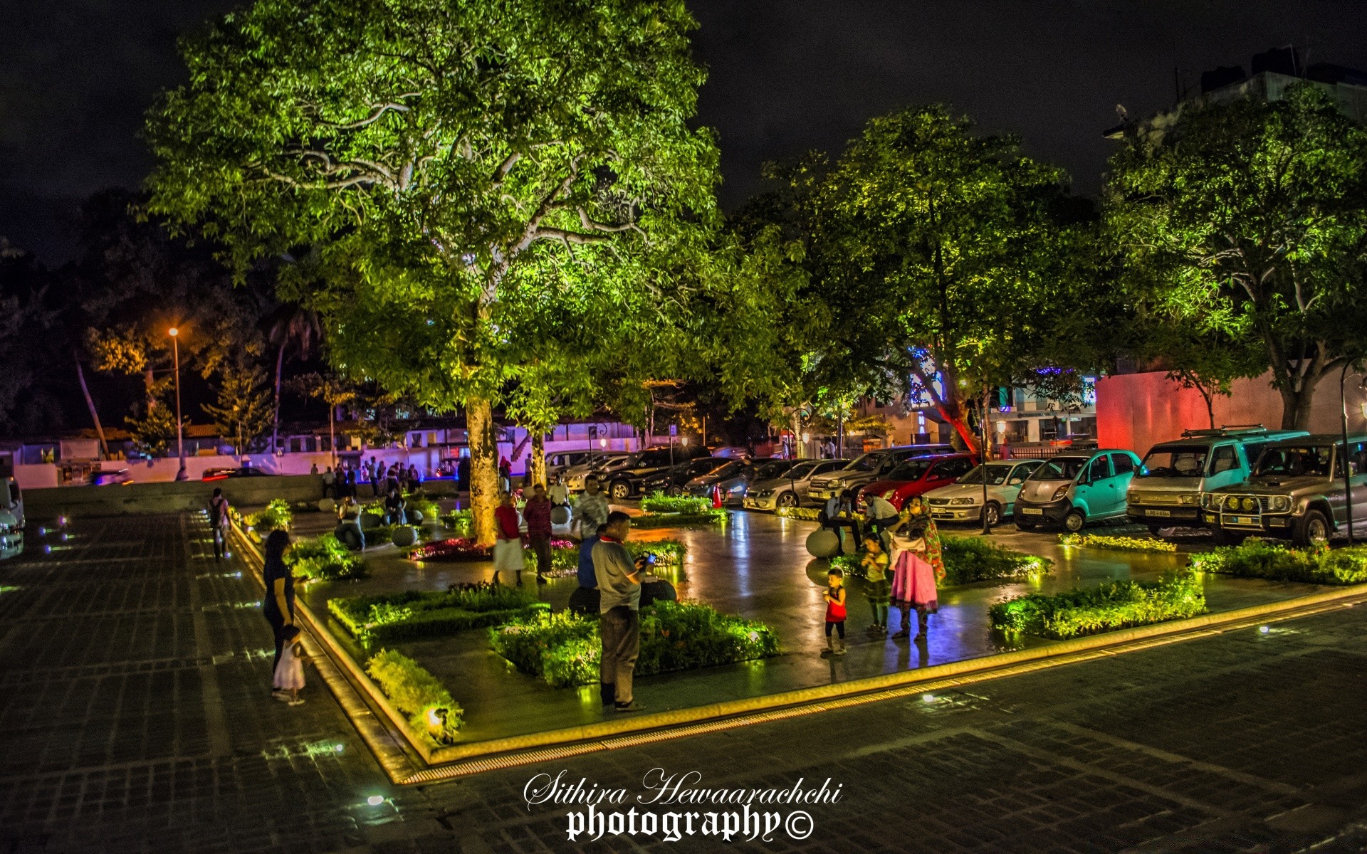 Famille dans un petit parc lumineux