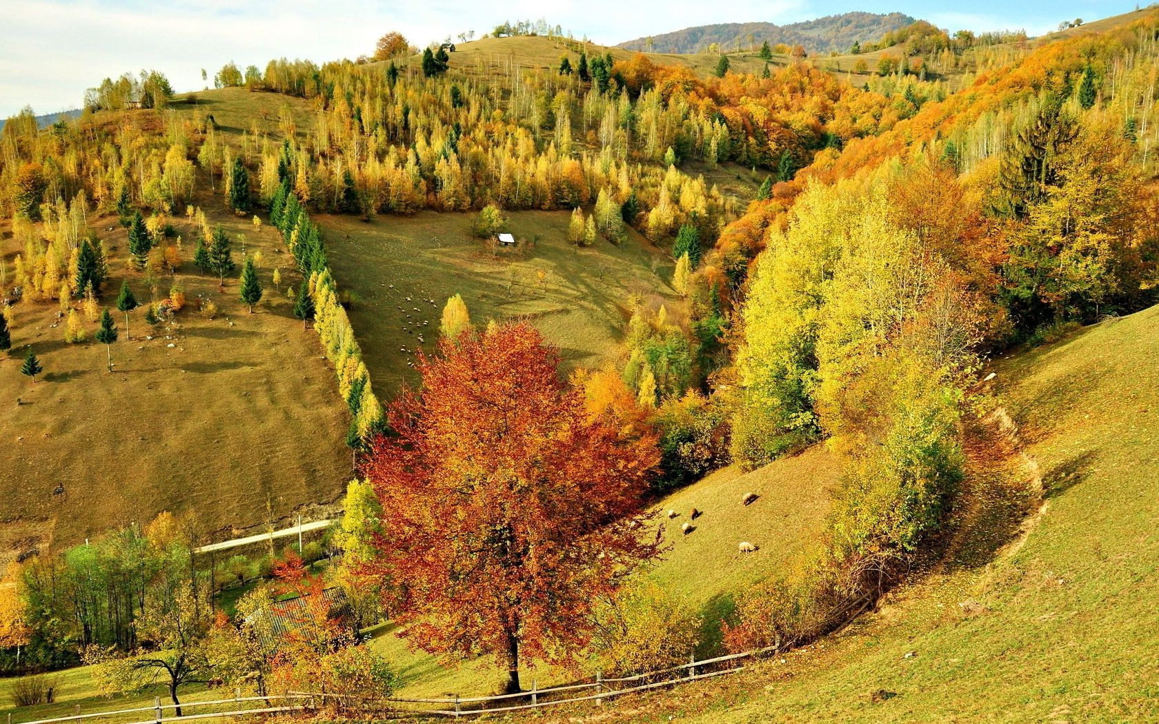 Orange petite fiat au centre du cercle sur fond de ciel nuageuxOrange petite Fiat au centre du cercle sur fond de ciel nuageux