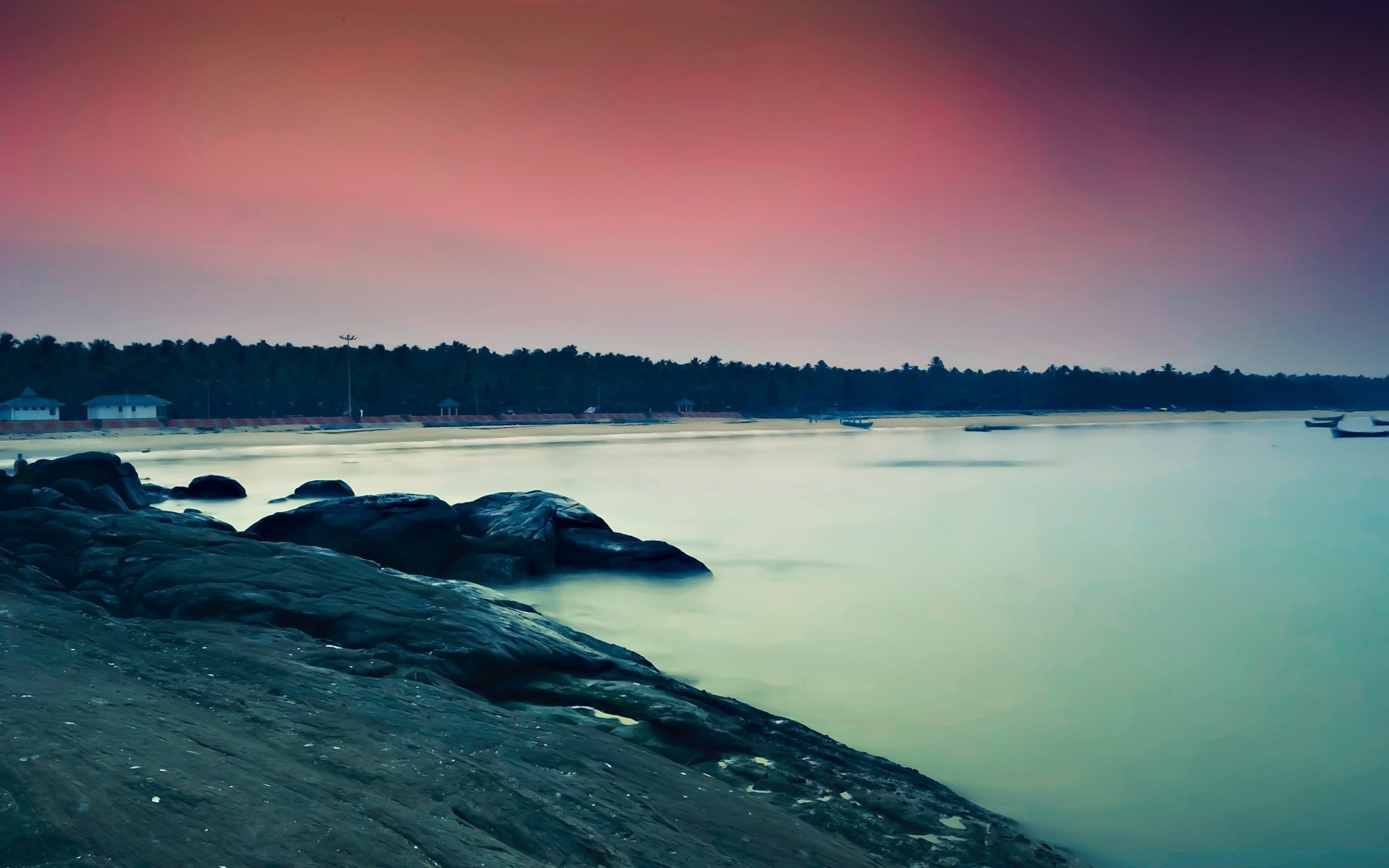 Côte multicolore au large d'une petite île