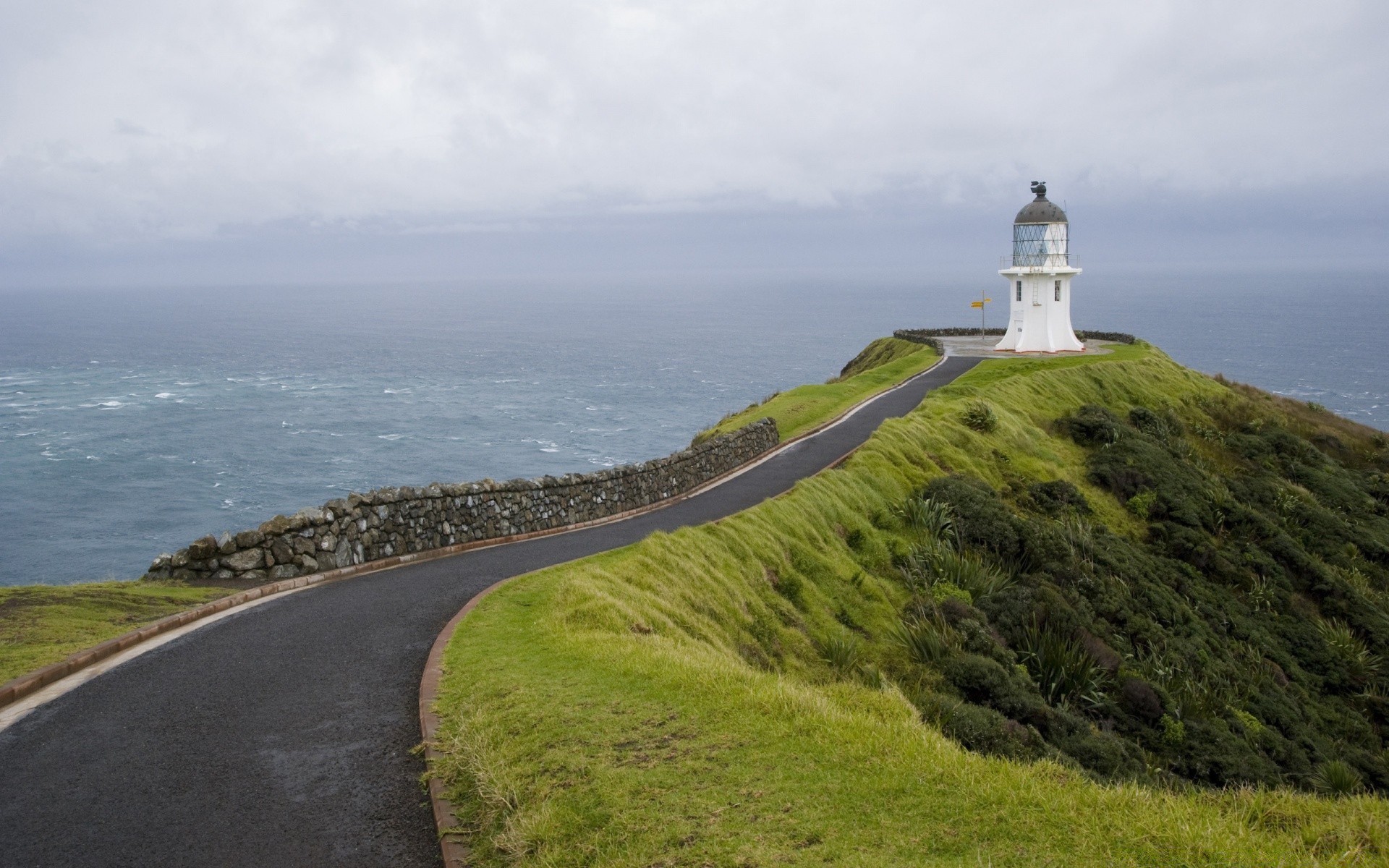 Phare sur la montagne et le ciel nuageux au-dessus de la mer